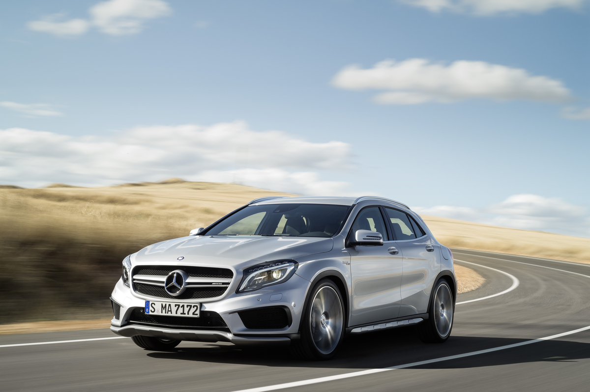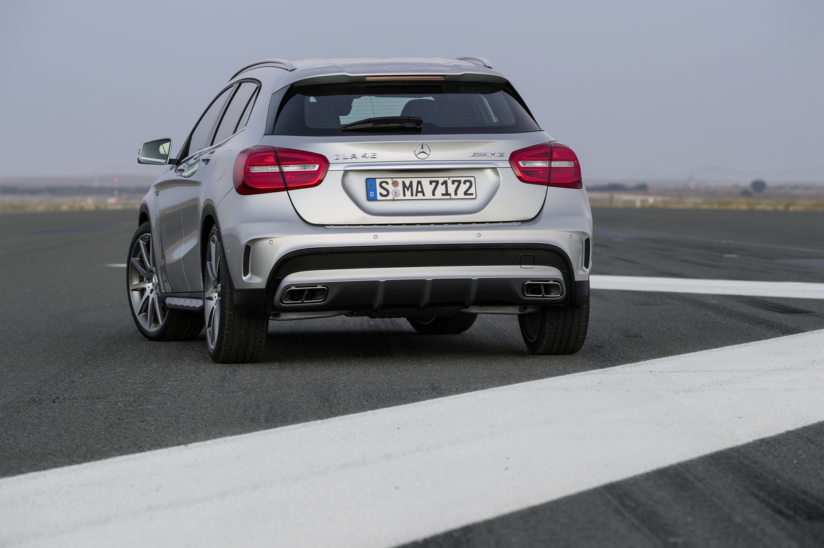 Mercedes-AMG rigorously continues its product initiative: with the new GLA45 AMG the performance brand of Mercedes-Benz makes a dynamic statement in the strongly growing segment of compact SUVs. The combination of powerful-distinctive design, exclusive appointments as well as superior engine power and driving performance is unique: the most powerful series-production four-cylinder engine in the world puts 355 hp of power and 332 lb-ft of torque on the road.