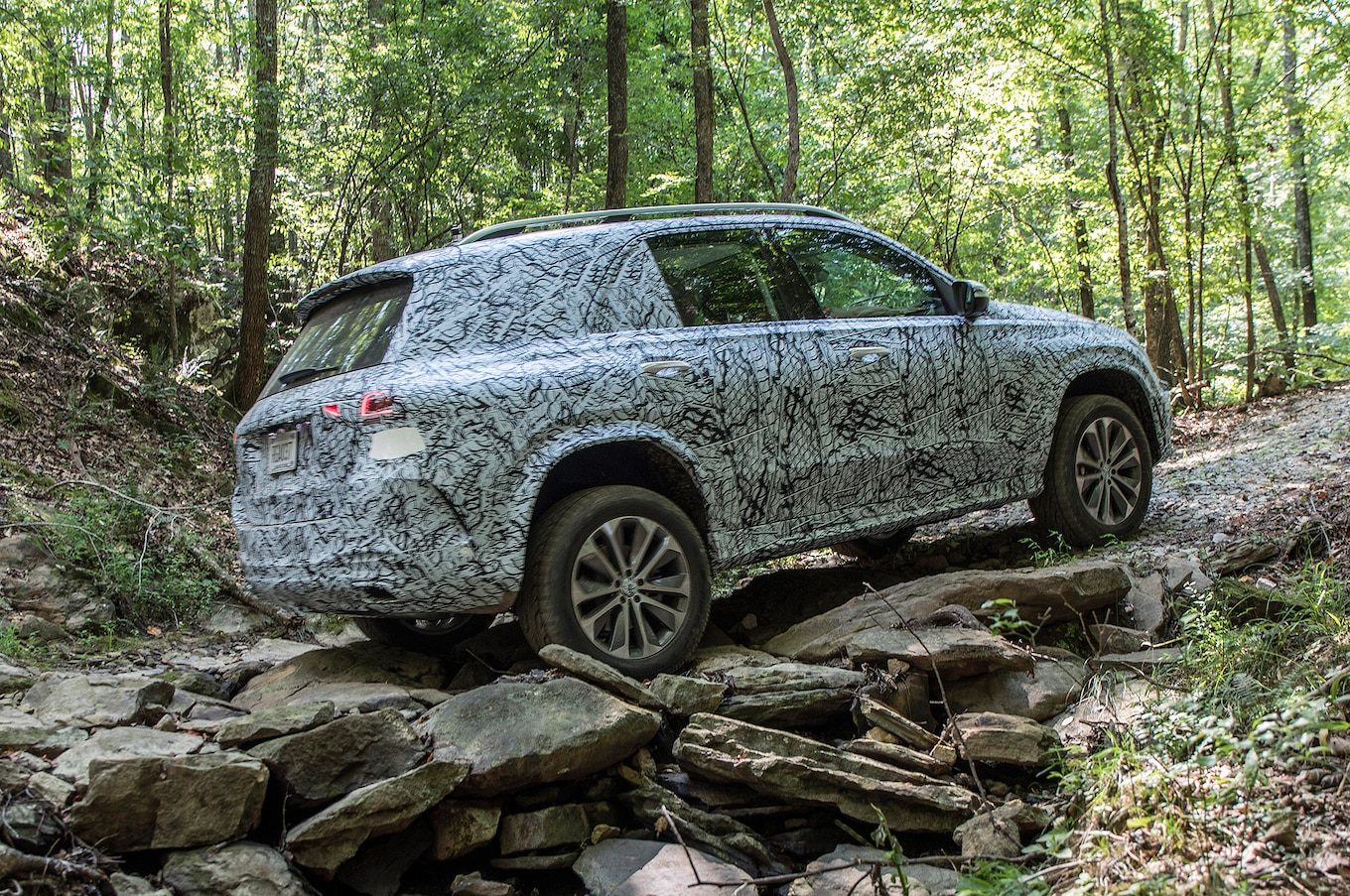 The new GLE-Class really is that good, even in prototype form.It starts with an all-new platform called Mercedes High Architecture, or MHA, but not necessarily all-new ideas. Indeed, the big party trick was born out of the road-only S-Class. Mercedes is calling it E-Active Body Control, and it takes the S-Class technology a big step further. On the S, a forward-looking camera scans the roads for bumps, holes, wavy pavement, and more and adjusts the damping so that when the car arrives at the obstacle it can waft over the imperfection without disturbing the passengers. It does so using hydraulics to lift the wheels up to pop over a bump or push them down into a hole, then put them back where they belong as you come off the bump or out of the hole. In practice, it allows you to drive over a speed bump at 35 mph and barely notice it.