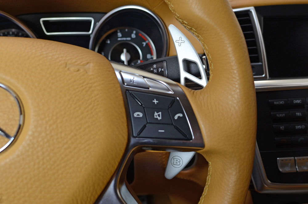 As a striking complement to these interiors BRABUS also offers wood and genuine carbon-fiber trim sets in any desired color and with a variety of surface finishes. BRABUS aluminum shift paddles for the steering wheel add sporty highlights in the cockpit. Another particular specialty of the refinement specialist from Bottrop is the BRABUS teakwood floor for the trunk of the two SUVs.