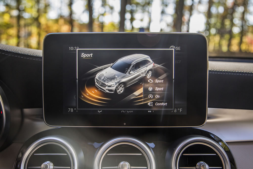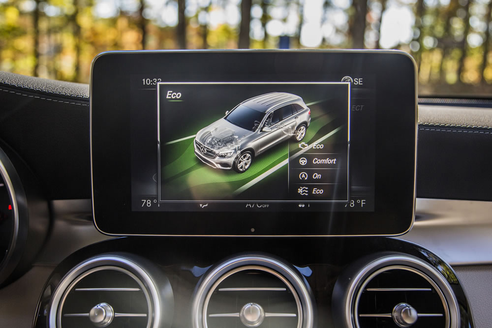 The same applies throughout the vehicle. Wheel damping firms up and steering thickens in sport or sport-plus, and the ride/handling trade-off is more effectively managed than in the conventional-suspension GLK. The optional air suspension goes even further by better managing body roll without significantly stiffening the ride. It also lowers the GLC for easier boarding and loading when it’s parked