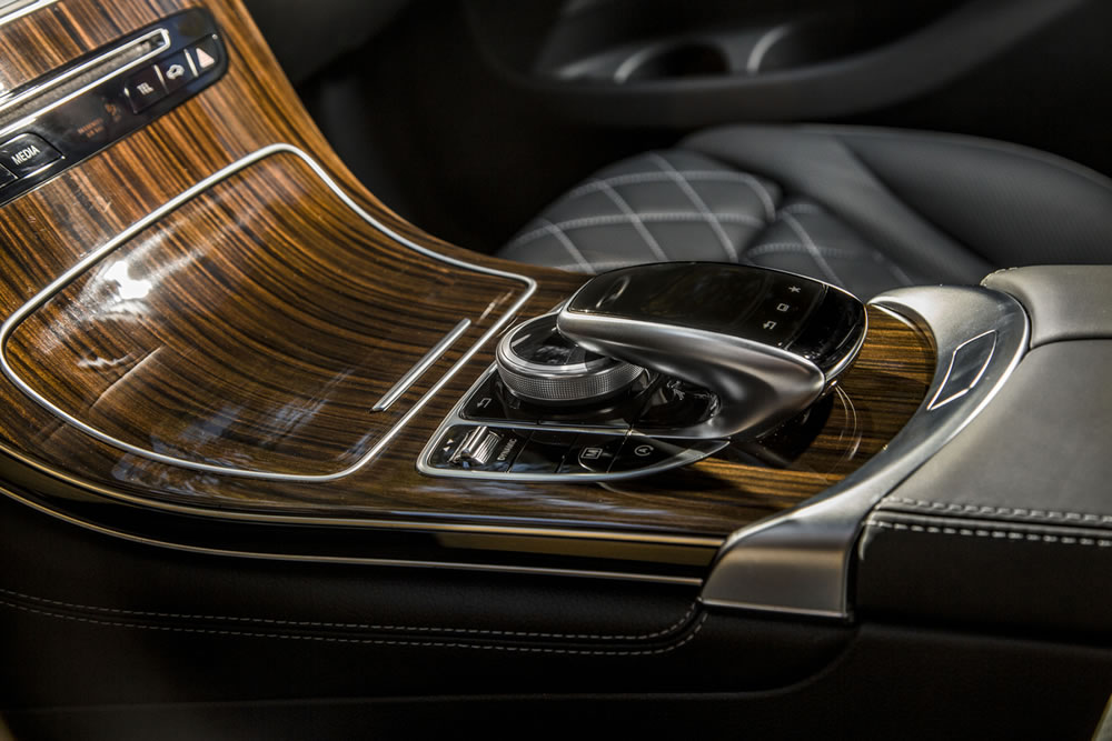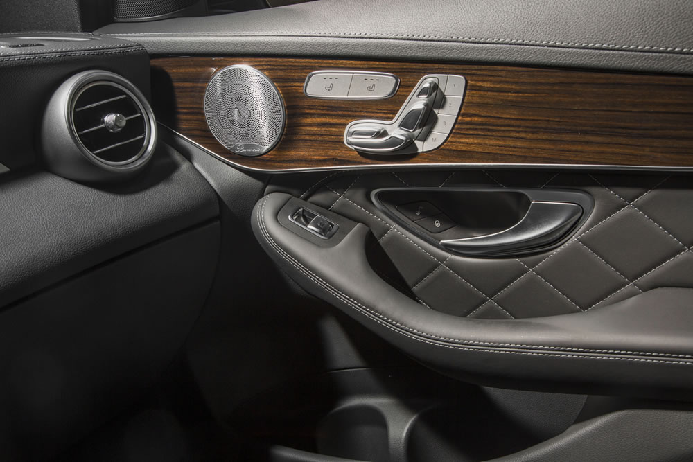 That’s obvious inside. There’s Mercedes’ current thing for video displays that look like an iPad suction-cupped to the dash, yes, but the design is generally attractive and the layout effective. Most significantly, the finish is way, way nicer than the GLK’s, following the path taken by the new C-class as opposed to cheaped-out CLA/GLA. All three of its wood trims look rich and authentic, and the optional stitched MB-Tex covering the dash and upper door panels almost feels like S-class territory.