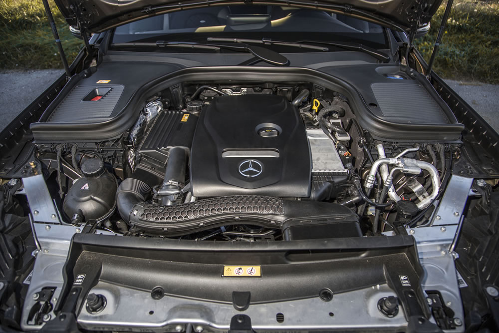 The four-cylinder turbodiesel following in a year is a little torque monster. By the noise inside the GLC, you can never be sure if it’s a diesel or not. The only way to know is standing next to the vehicle when it’s idling. It’s a great engine for just getting around, and with the nine-speed tuned for short shifts, surprisingly responsive. Mercedes seems to be sorting the 9G-Tronic more thoroughly as it goes, in terms of gear selection or throttle reaction. There are definite, useful changes in operation when the control program is switched from eco to sport.