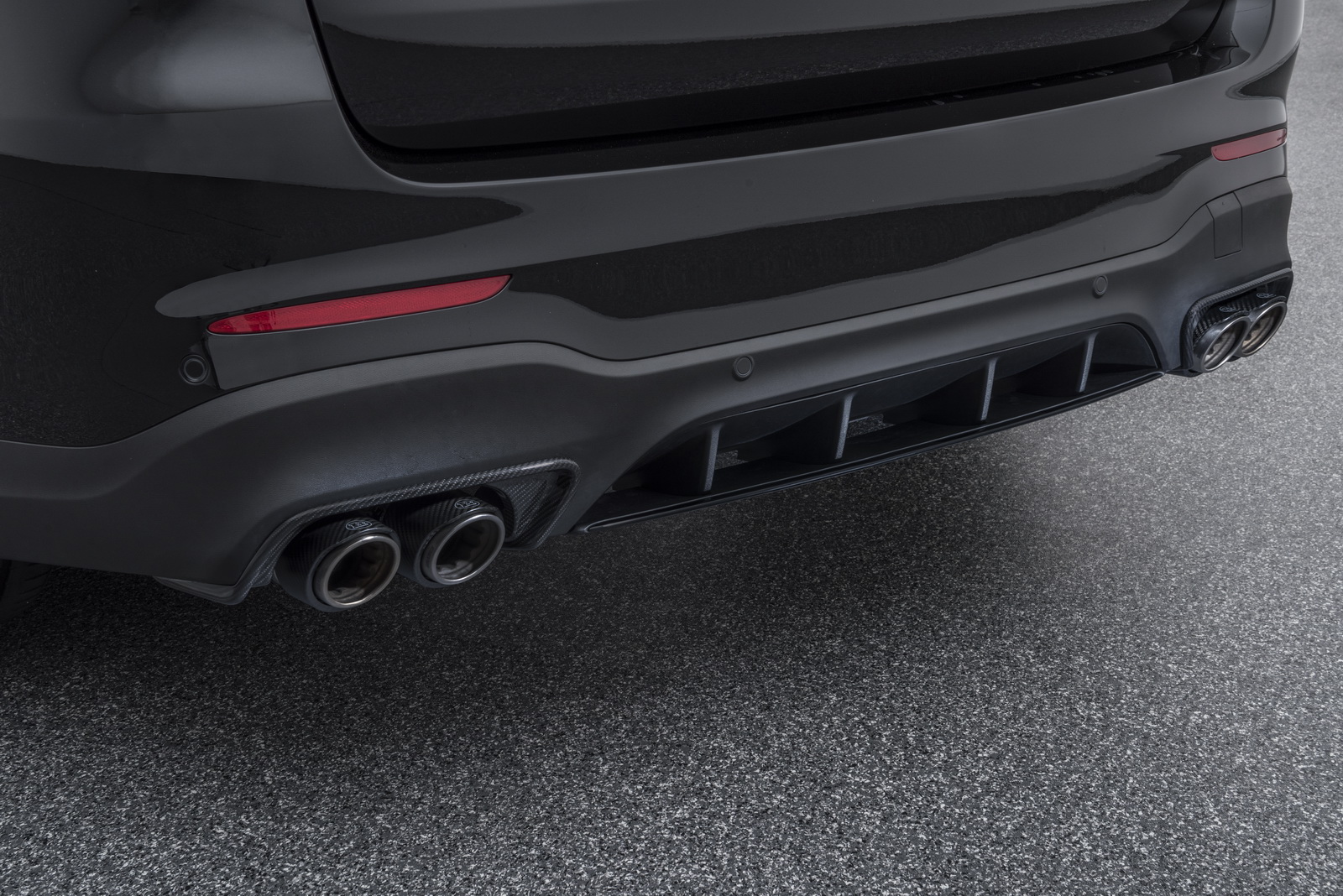 Sound and performance are the strong suits of the BRABUS sport exhaust, which fits both the GLC 63 S and the GLC 63. The stainless exhaust system reduces exhaust backpressure and features exhaust flaps for electronic control of the exhaust note. From the cockpit, the driver can choose between the discreet “Coming Home” mode and the open position of the exhaust flaps, which coax a decidedly powerful sound from the twin-turbo V8. In addition, the BRABUS exhaust is not just an absolute acoustic treat, but a visual one as well. The four tailpipes, two on either side of the rear, are made from a combination of the two hi-tech materials titanium and carbon fiber, making them eye-catchers par excellence.