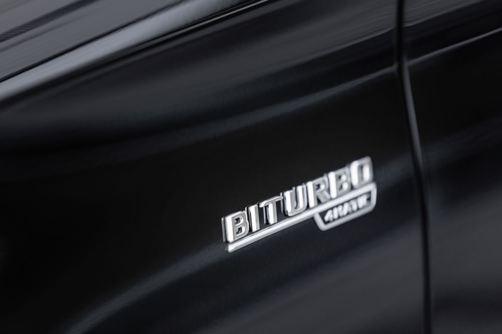 The 3.0-litre V6 biturbo engine is used in numerous AMG Performance models. It delivers a maximum output of 270 kW (367 hp) plus maximum torque of 520 newton metres. Installed close to the engine, the two turbochargers are especially spontaneous in their response. The performance yield comes courtesy, among other things, of the boost pressure, which has been increased to 1.1 bar. The NANOSLIDE® coating of the cylinder liners is also used in the Formula 1 engines of MERCEDES-AMG PETRONAS. Especially tough and, therefore, wear-resistant, this coating also reduces friction, thereby contributing to higher efficiency. The same applies to the spray-guided multiple injection with up to 200 bar fuel pressure. Visually, the powerplant can be identified by the red aluminium insert in the engine cover and the AMG logo.