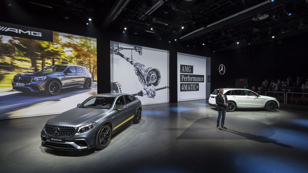 The new AMG midsize performance SUVs also occupy a very special position in their market segment in terms of technology. “At their heart is our 4.0-litre V8 biturbo engine – the first and only eight-cylider in the whole segment,” said Tobias Moers, CEO of Mercedes-AMG GmbH. “With it, the GLC 63 offers amazing performance under all conditions – aided by an array of other high-tech features, including our AMG 9-speed sports transmission and our new all-wheel drive system, which we introduced for the first time last year in the new E-Class.” A new and distinctive design feature of the new GLC 63 is the AMG Panamericana grille, which was previously reserved for the AMG GT family.