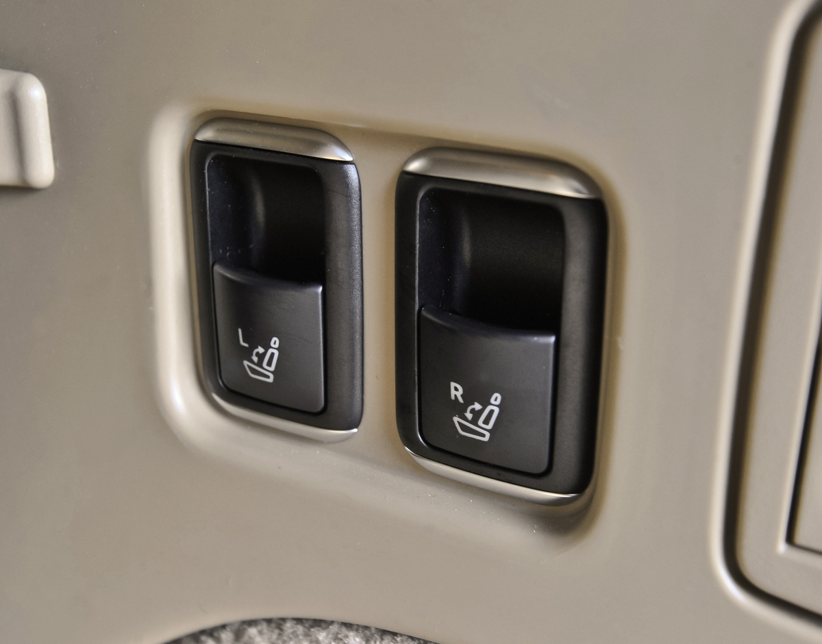 That stretched wheelbase, wider body and taller roof translates into a cavernous cabin. All together, the GL delivers 143.6 cubic feet of cabin volume, with up to 93.8 cubes of cargo area with both rear seat rows stowed. Speaking of sending the back seats packing, the second and third rows are now mechanized, which means getting the second-row buckets to stow is as simple as mashing a button. The same goes for the way-back bench as well.