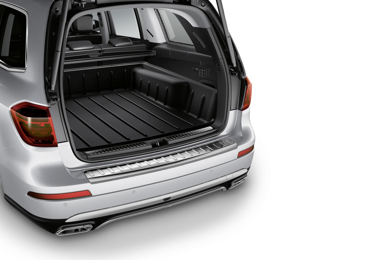 Front and rear mud flaps (95 euros per set) protect against dirt and scratches on the side areas, at the rear and on the underbody. Matched to the vehicle contour, the genuine accessory products retain the sporty appearance of the new GL-Class.