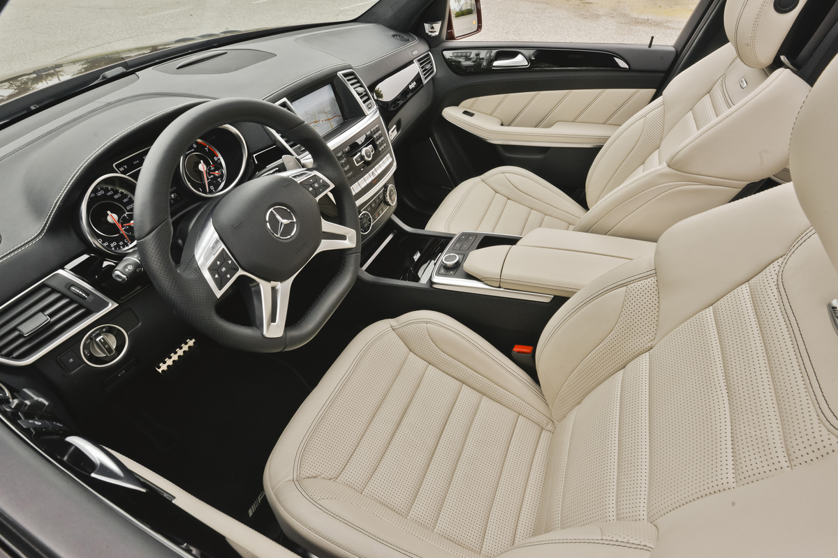 The electromechanical AMG speed-sensitive sports steering is equipped with variable power assistance that adapts in accordance with the selected suspension mode. This system also helps to save fuel, as the power assistance only consumes energy when the driver is actually turning the steering wheel. The GL63 AMG runs as standard on machine polished, twin five-spoke 10 x 21 AMG alloy wheels sporting 295/40 ZR 21 tires. For the shortest possible braking distances and excellent fade resistance, there is the AMG high-performance brake system with ventilated and perforated discs at all four corners – 15.4 x 1.4 inches (front) and 13.6 x 1.0 inches (rear).