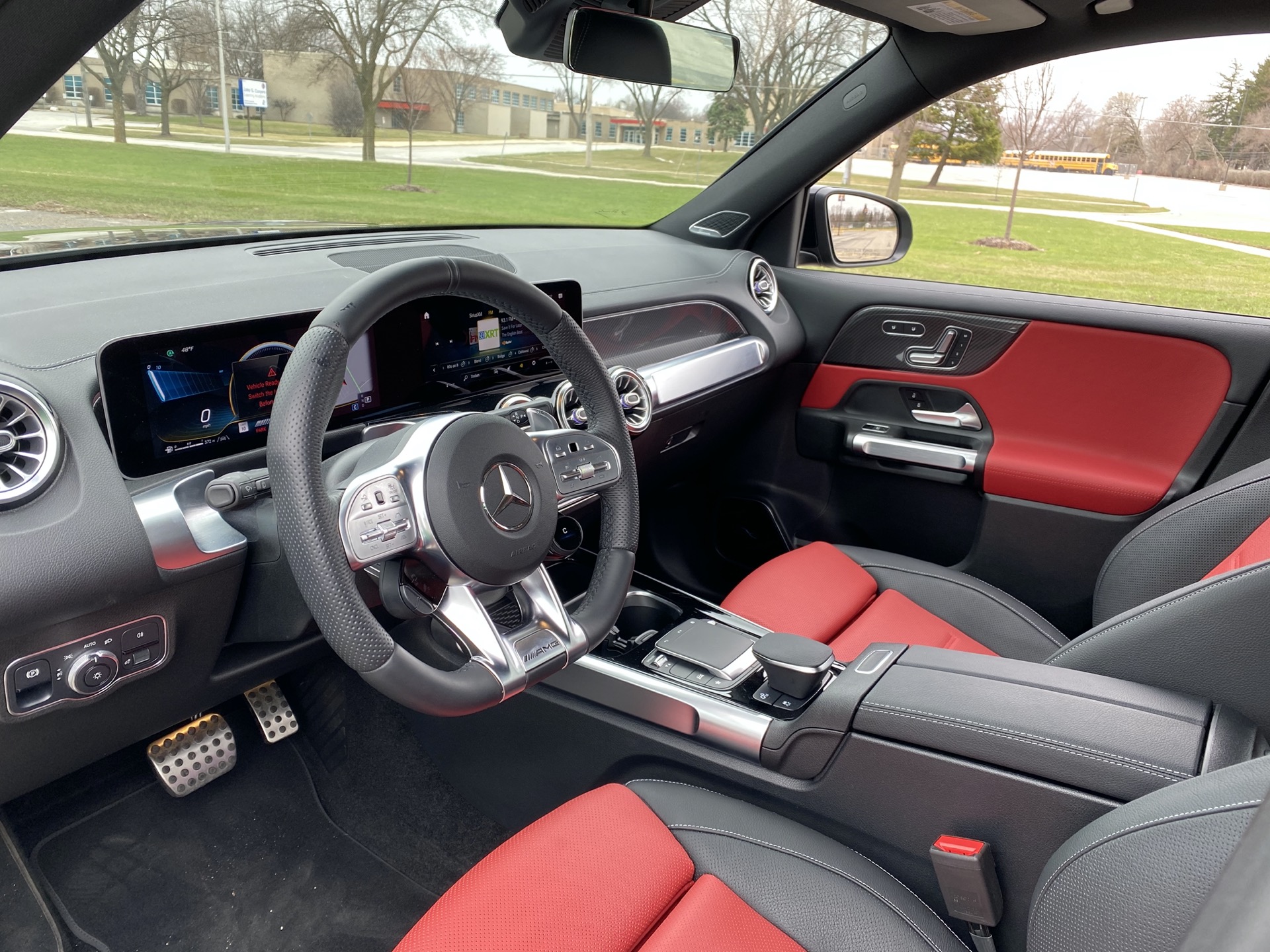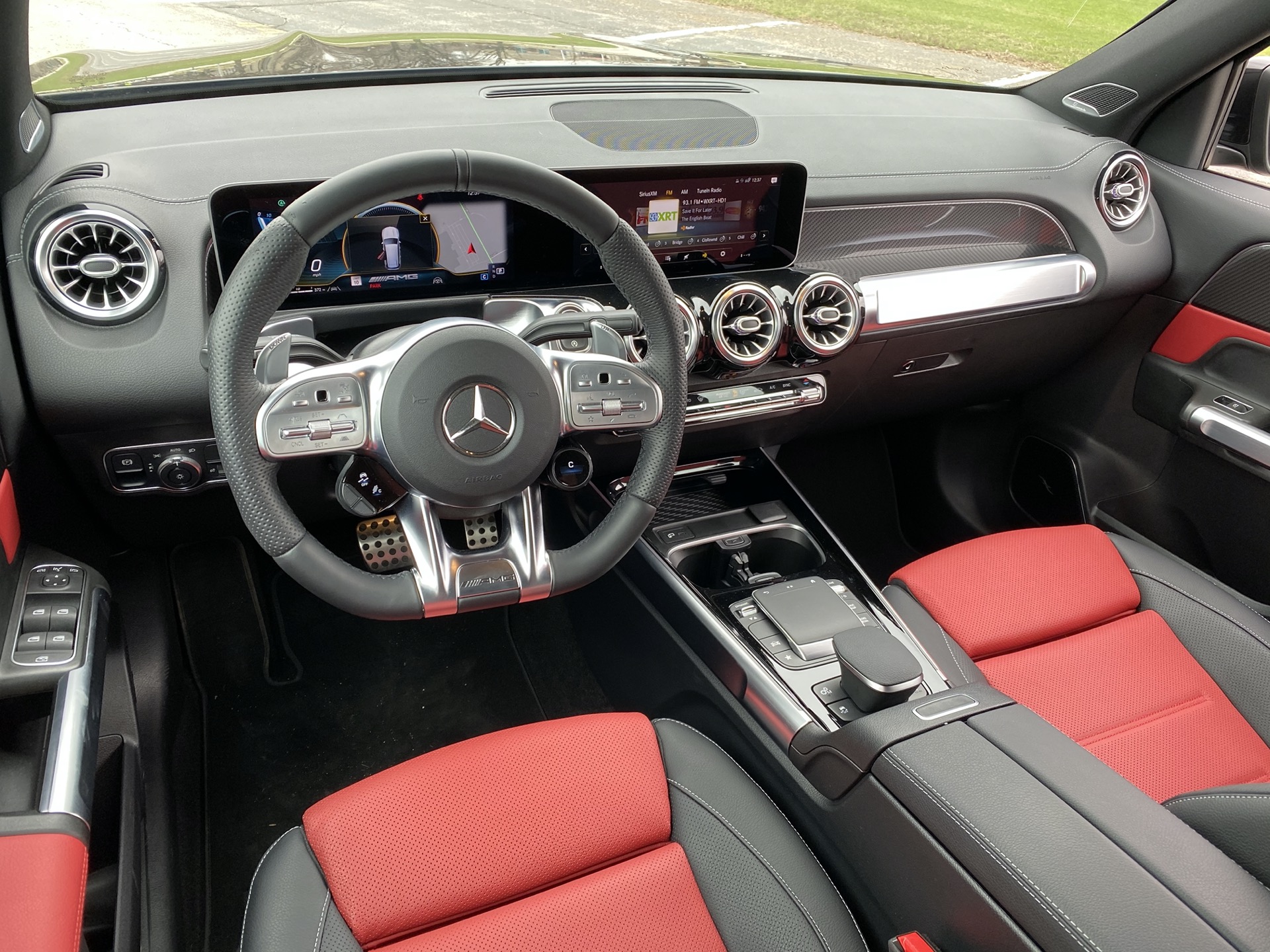 That’s about a half-second slower than the smaller, lighter BMW X2 M35i (4.7 seconds from 0-60 mph). The M35i’s peak torque of 332 lb-ft comes on at 1,700 rpm compared to the GLB35’s 295 lb-ft at 3,000 rpm. The GLB35’s dual nature of acting behaved under watchful eyes only to turn feral when commanded proved fun every time, but it didn’t have that mind-blowing AMG effect that overwhelms the senses. At 3,869 pounds, it weighs about 150 pounds more than the M35i, and if it were a running back, it would plow ahead more like Derrick Henry than dance like the light-footed Alvin Kamara.