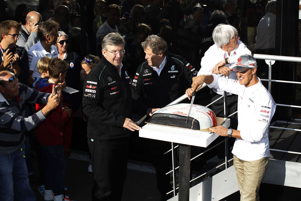 It was a very exciting race for Michael, and a great demonstration of his skills in his 300th Grand Prix. Unfortunately we didn’t quite have a quick enough car today to be pushing for the podium. Michael also had a problem with his gearbox towards the end which prevented him from challenging after his second stop. Nico made a strong effort to get into the points and almost succeeded. However with a lack of dry running, and the car not quite set up as he wanted, that was always going to be tough. We will look ahead now to Monza and keep working hard to improve our performance.
