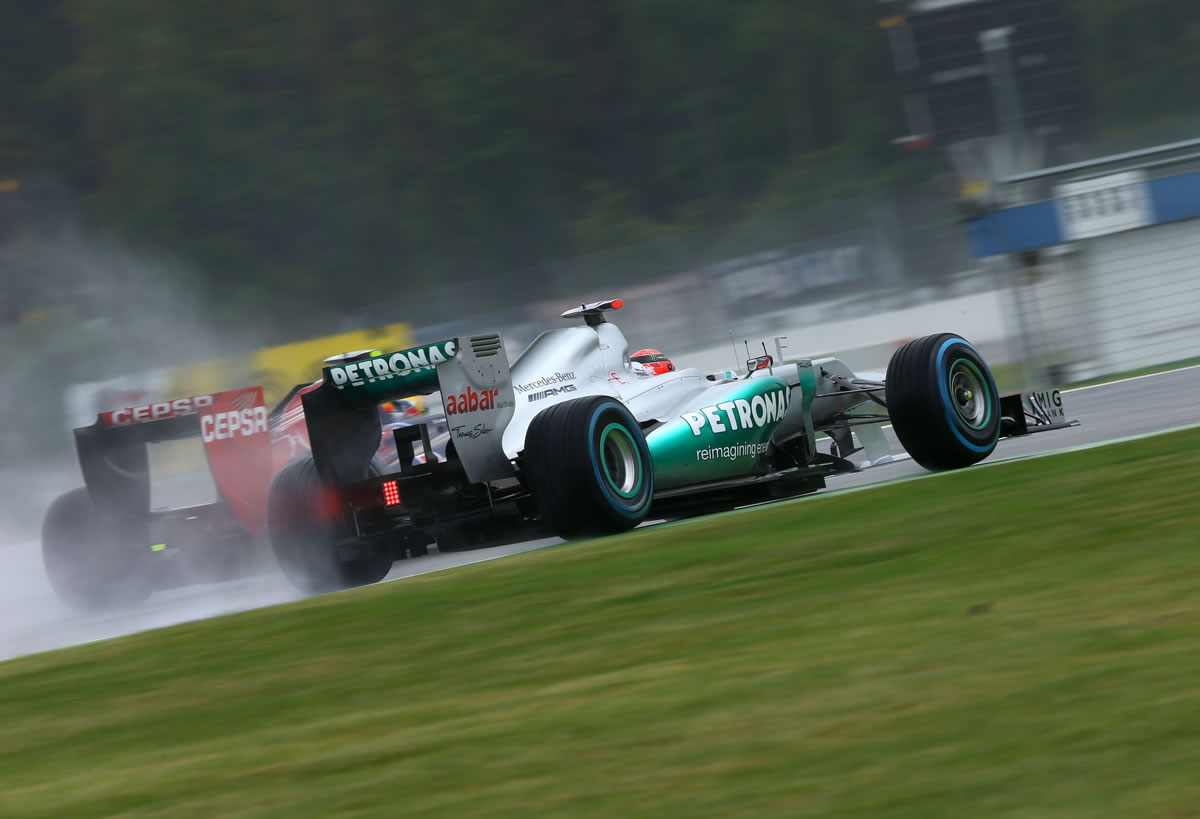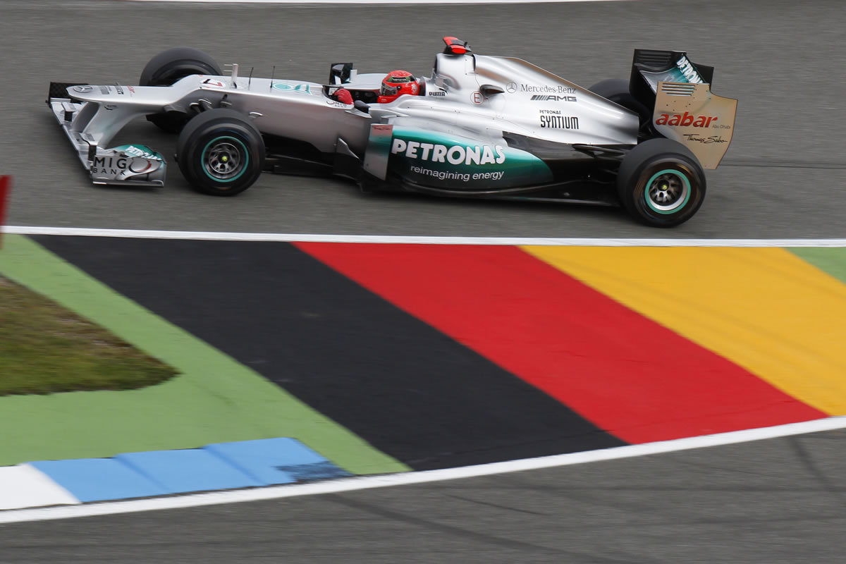 Mercedes AMG Petronas driver, Michael Schumacher, started the 2012 German grand prix 3rd on the grid and finished the race 28.9 seconds behind the winner, Ferrari’s Fernando Alonso for a 7th place finish. Thanks in part to a good strategy and impeccable driving, Nico Rosberg, who started in 21st, finished the race in 10th. Still landing him in points. The winners of the 2012 Formula 1 Grosser Preis Santander von Deutschland were Ferrari’s Fernando Alonso, McLaren-Mercedes’ Jenson Buton and Lotus-Renault Kimi Raikkonen.