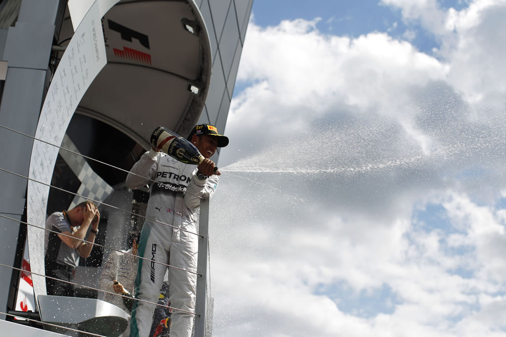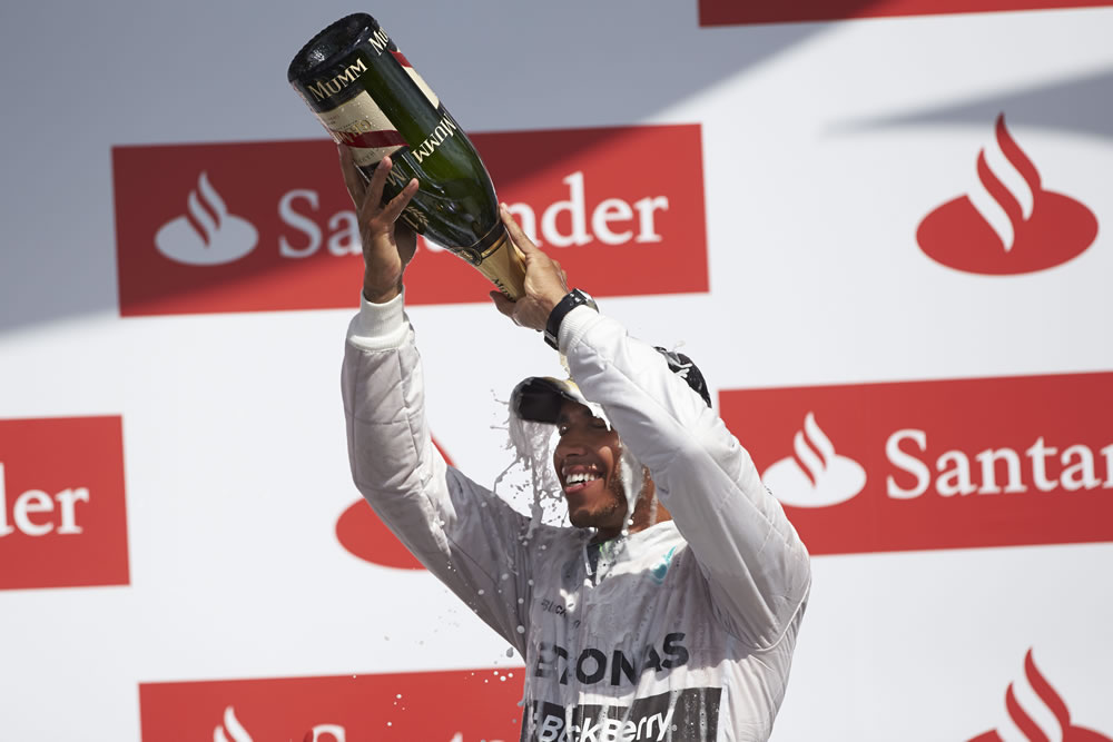 - Lewis scored the team’s eighth win in nine races in 2014 – and his fifth of the season so far