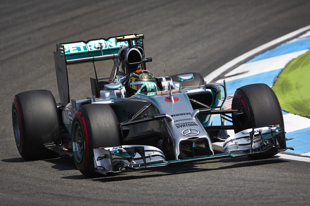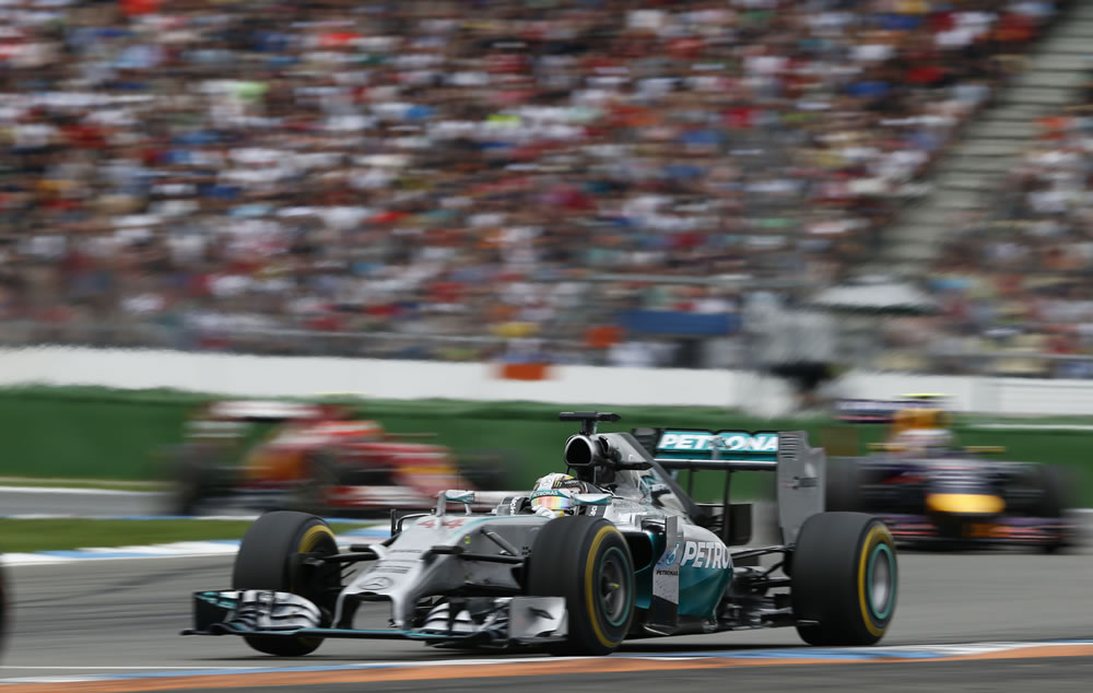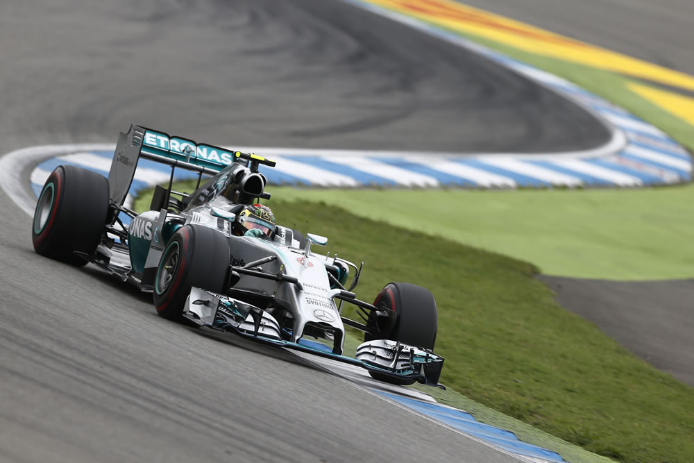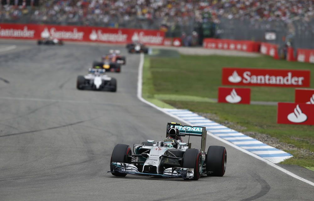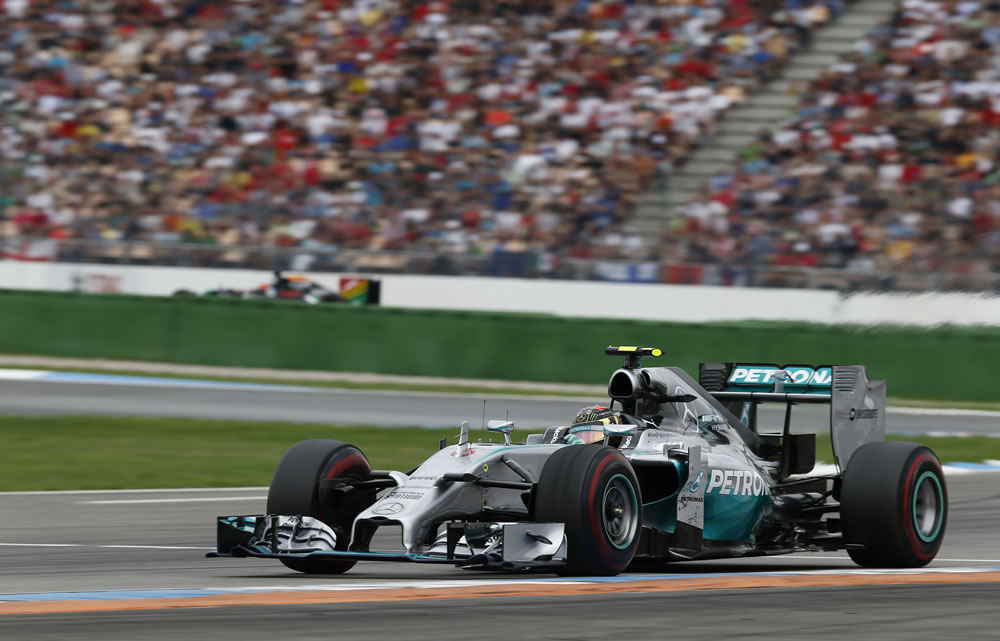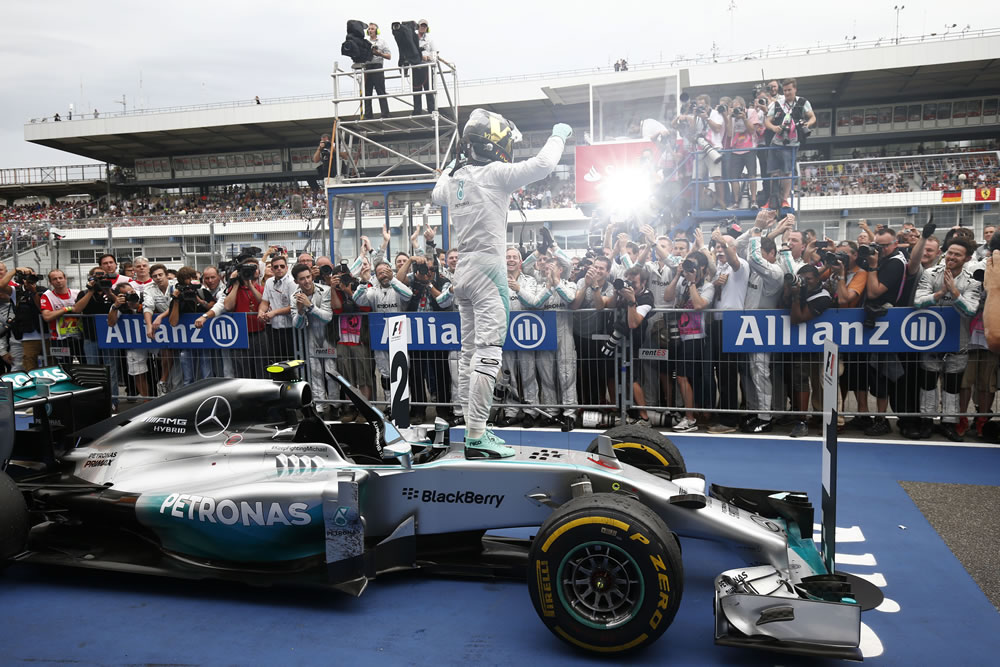 Nico Rosberg dominated the German Grand Prix for a win on his home track with teammate Lewis Hamilton finishing in third position, gaining 17 places from the grid.