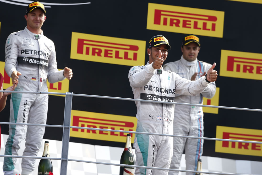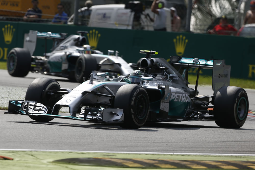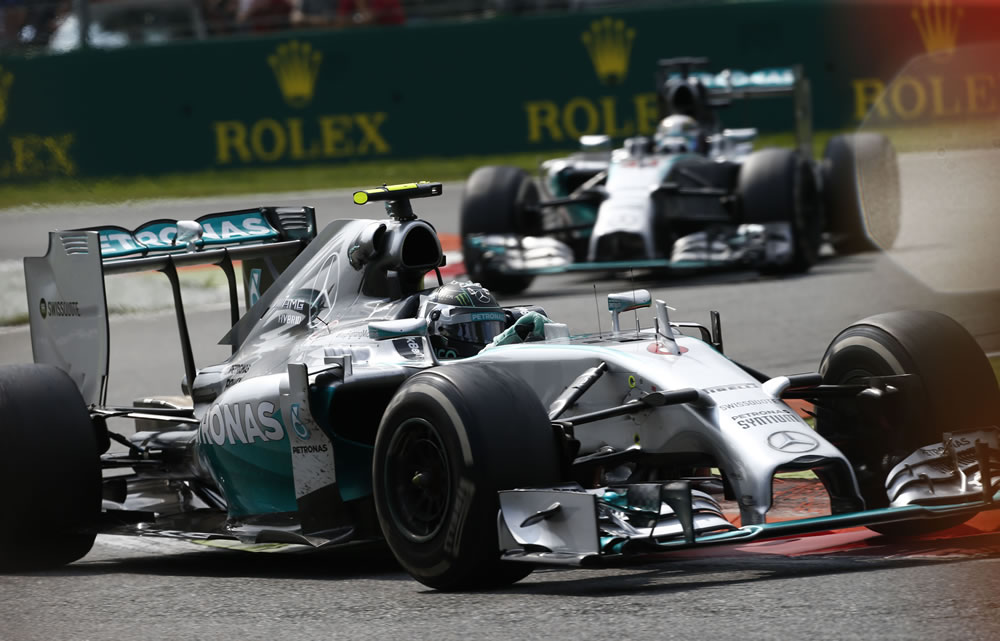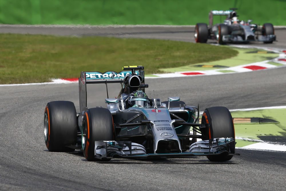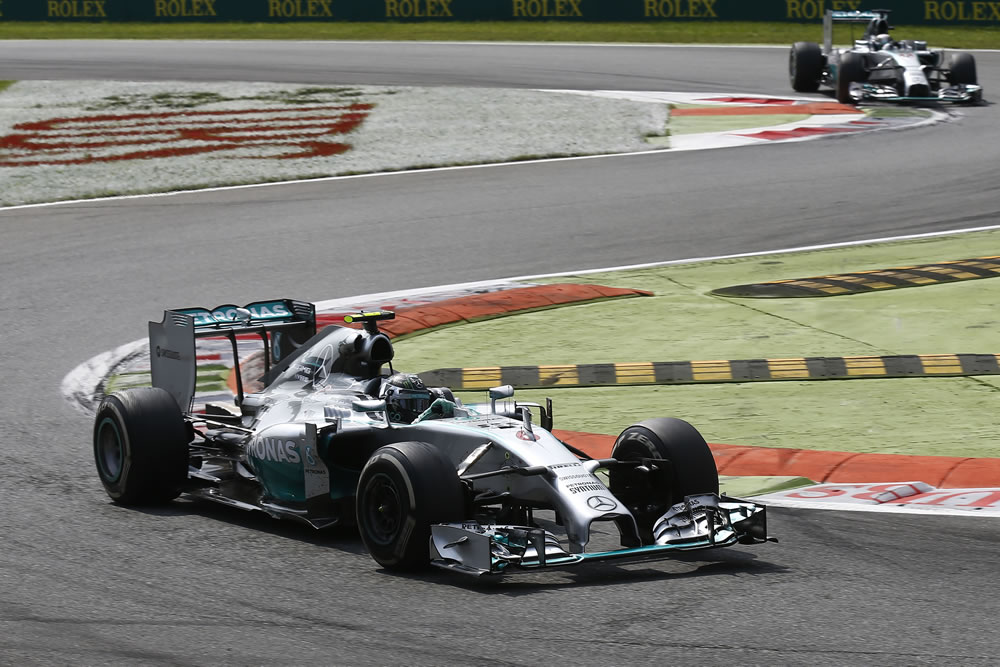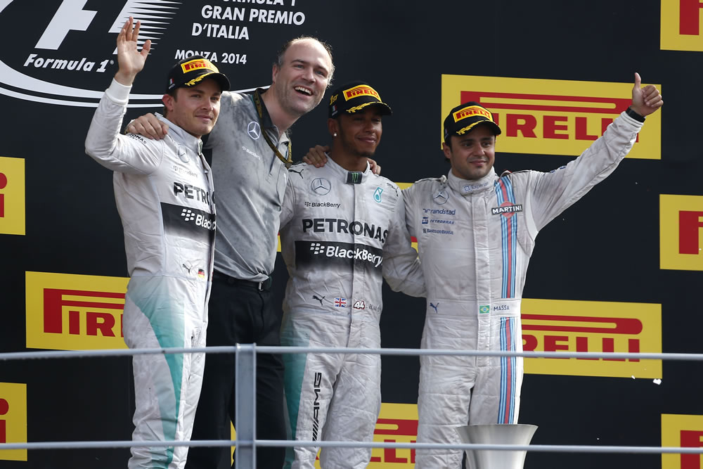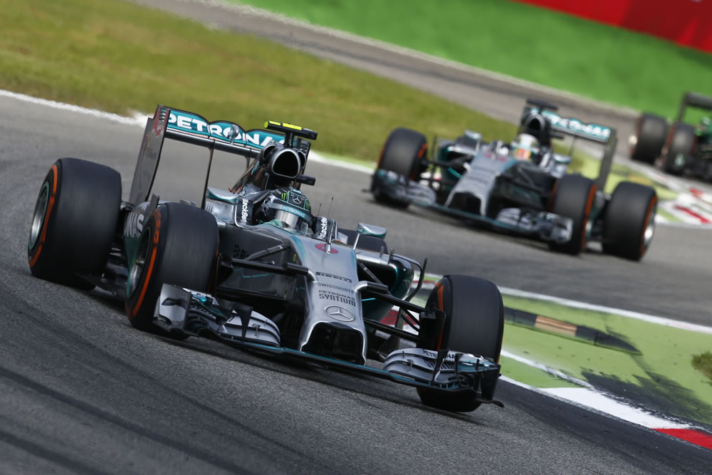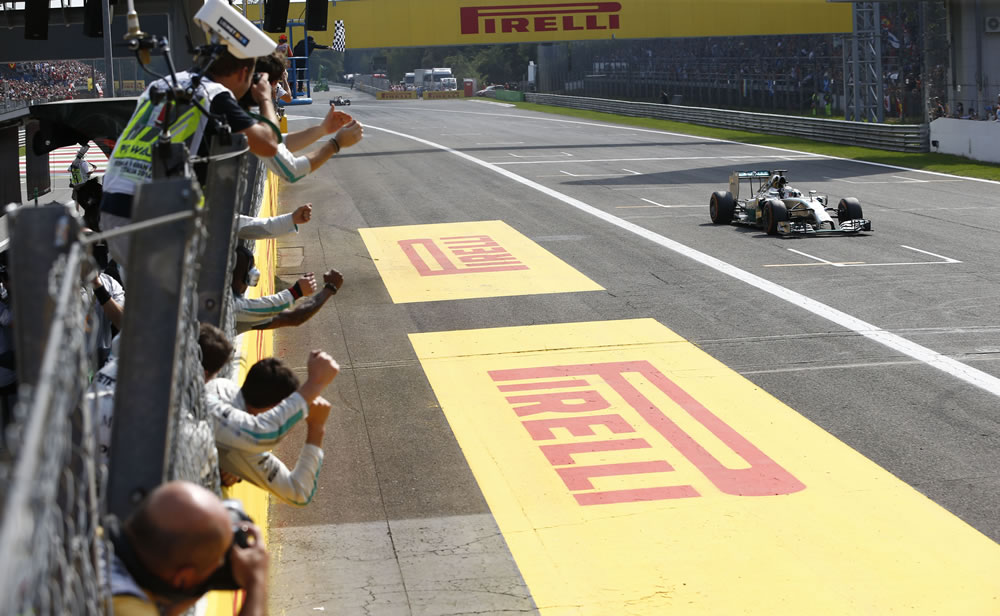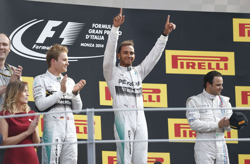 Lewis Hamilton won the 2014 Italian Grand Prix with Nico Rosberg second, achieving the team’s seventh 1-2 finish.