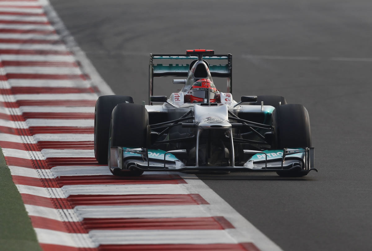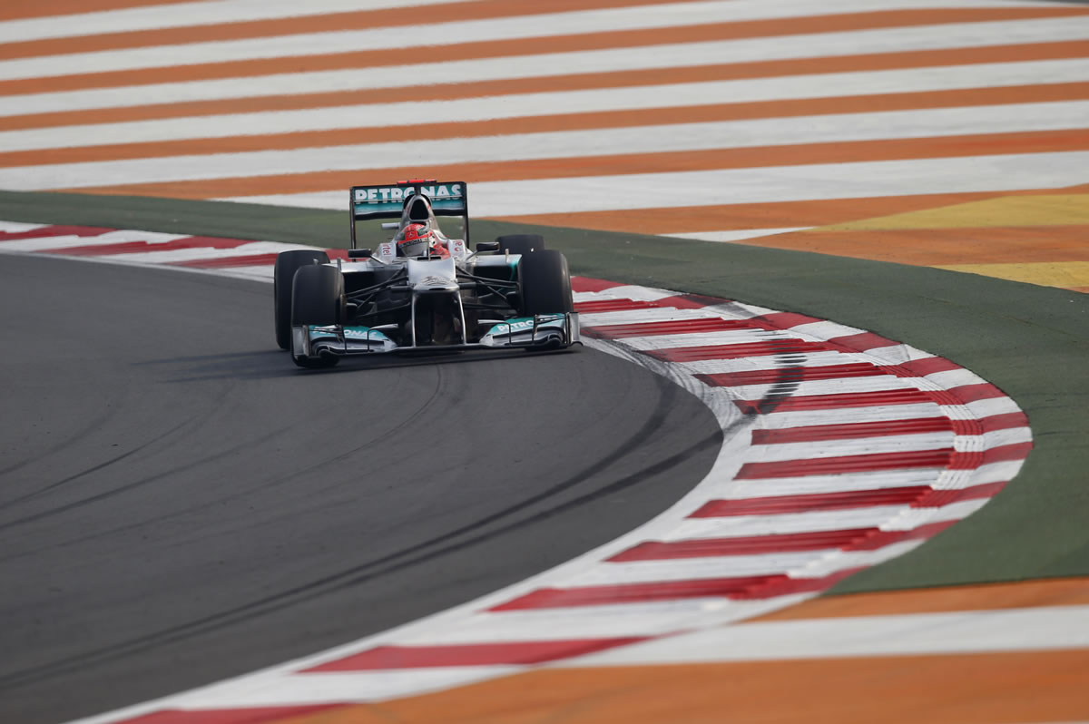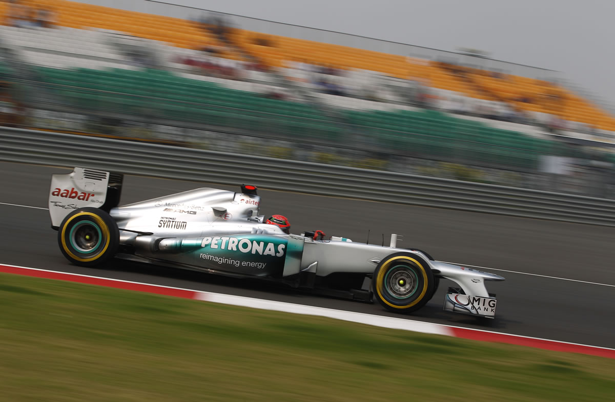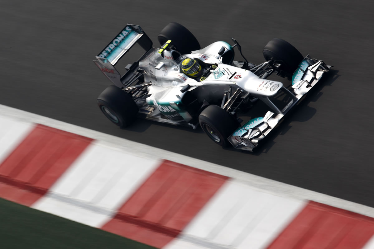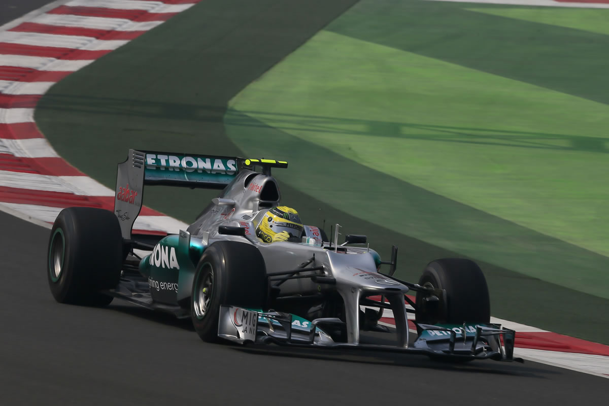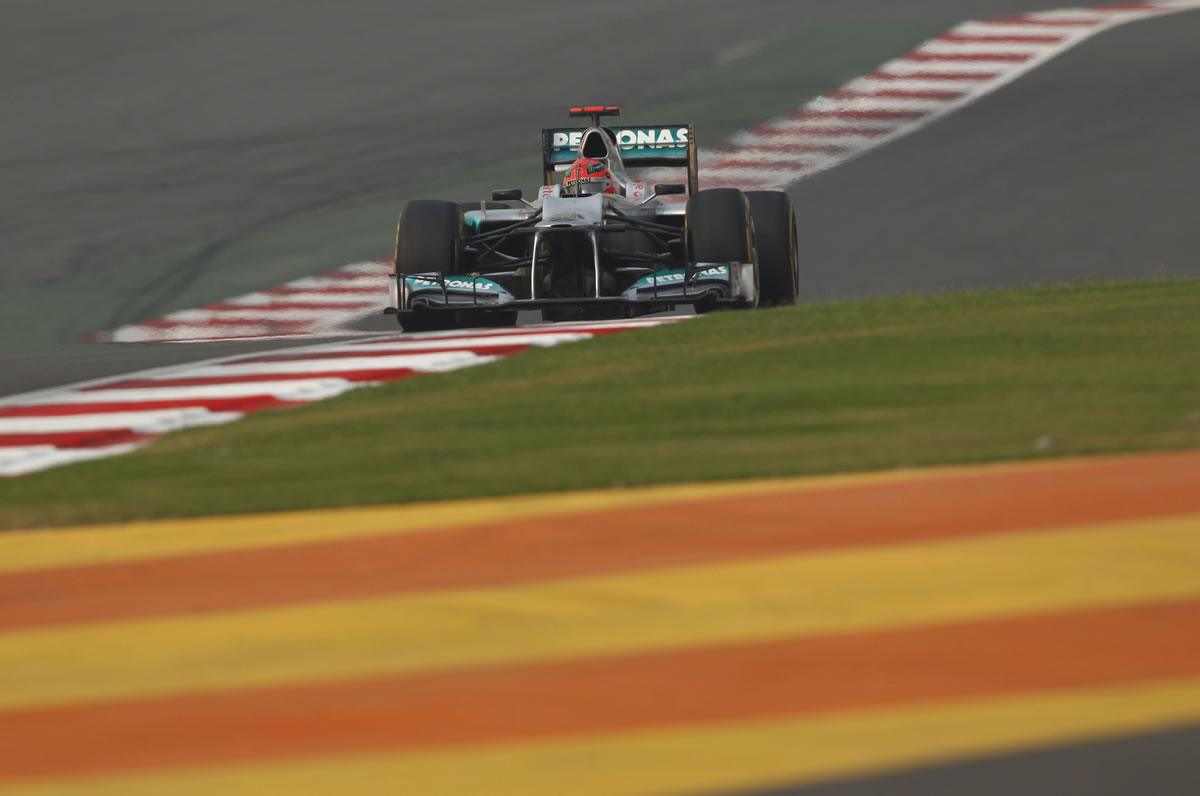 Nico Rosberg finished the Indian Grand Prix in 11th place today with team-mate Michael Schumacher classified in P22. The race was dominated by Red Bull Racing-Renault and McLaren Mercedes with both team-members finishing in the top five. Sebastian Vettel came in first followed closely by Fernando Alonso, trailing by 9.4 seconds. Third place was takien by Mark WEbber, Lewis Hamilton fourth and Jenson Button in fifth.