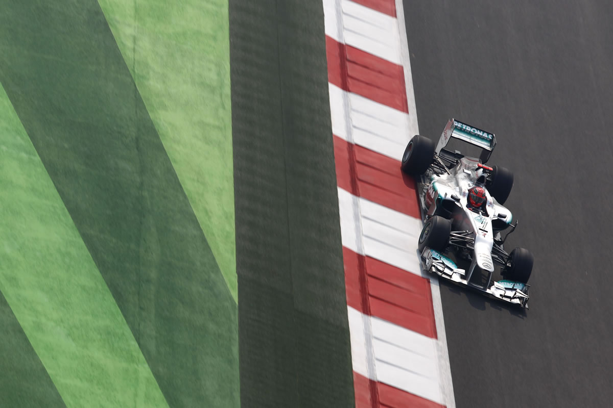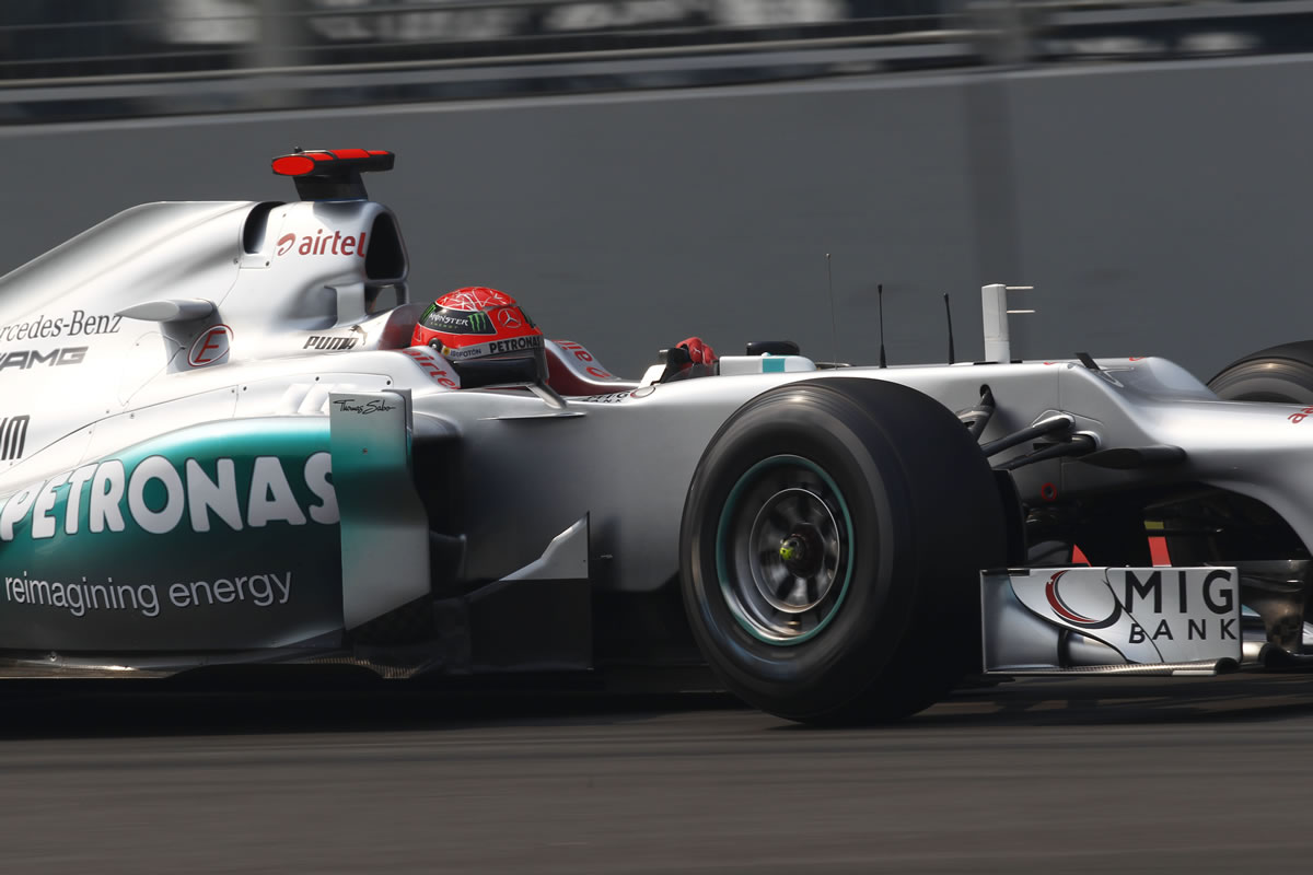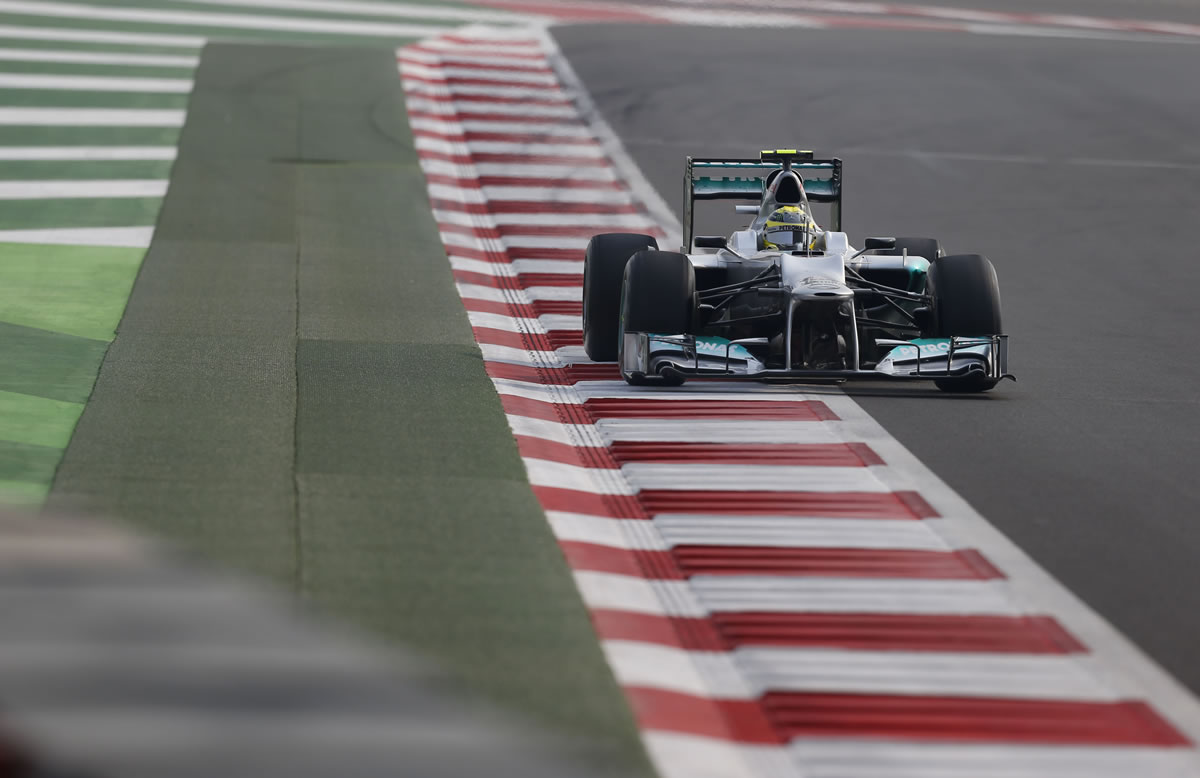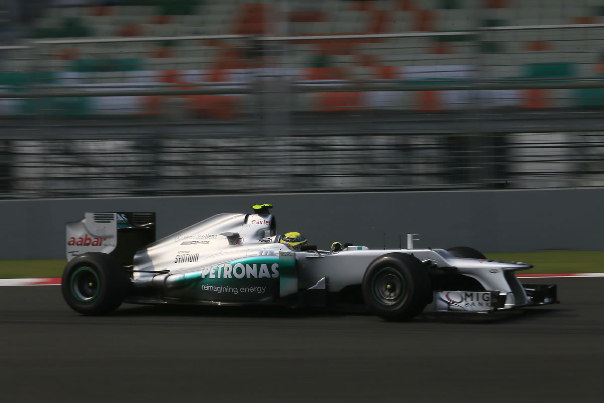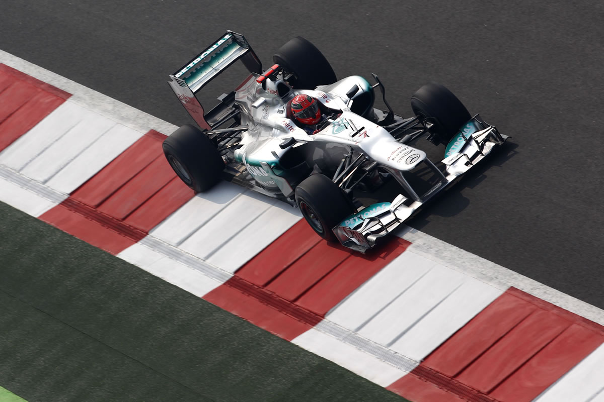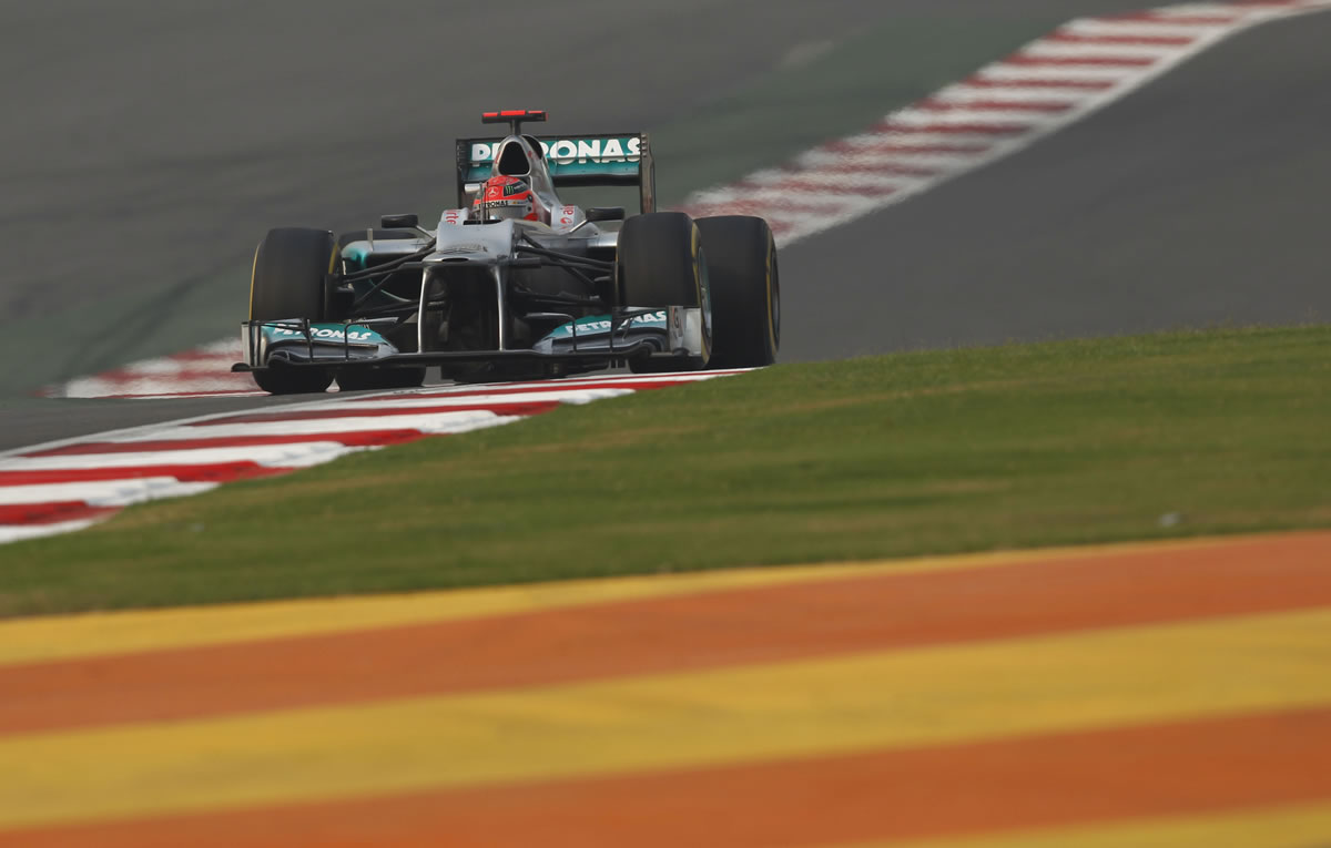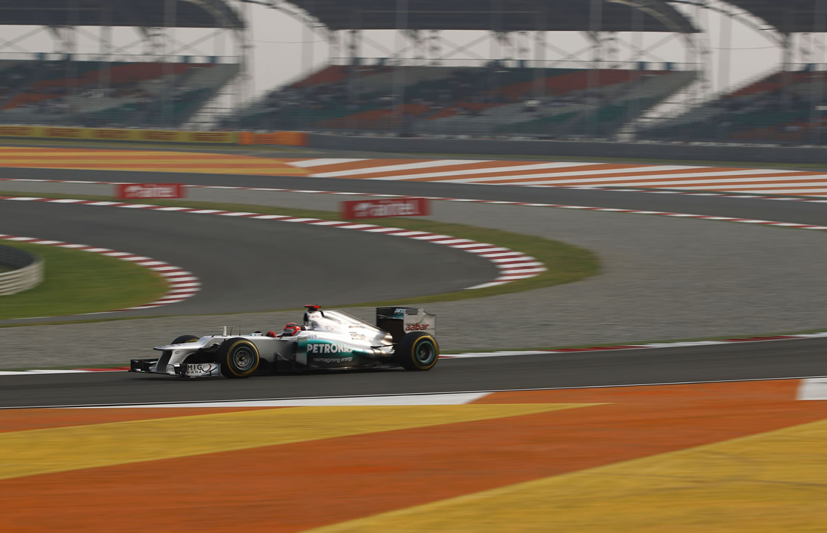 Nico Rosberg finished the Indian Grand Prix in 11th place today with team-mate Michael Schumacher classified in P22. The race was dominated by Red Bull Racing-Renault and McLaren Mercedes with both team-members finishing in the top five. Sebastian Vettel came in first followed closely by Fernando Alonso, trailing by 9.4 seconds. Third place was takien by Mark WEbber, Lewis Hamilton fourth and Jenson Button in fifth.