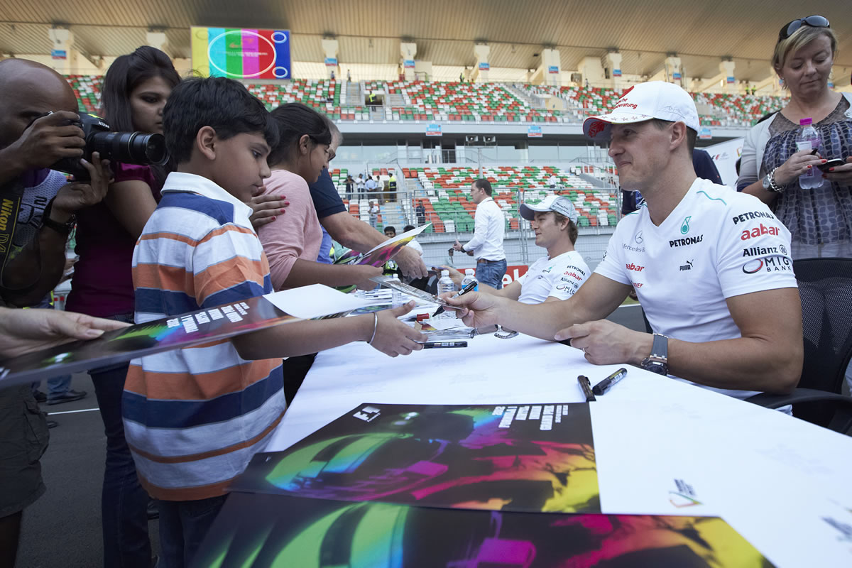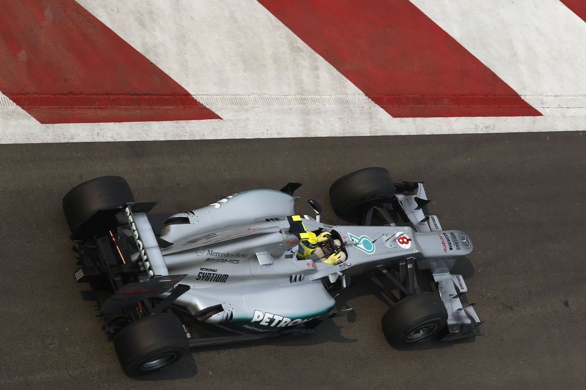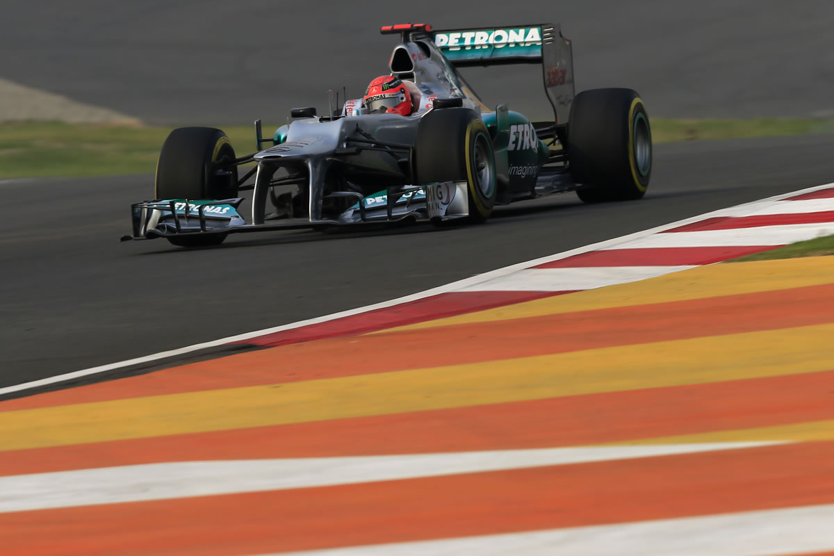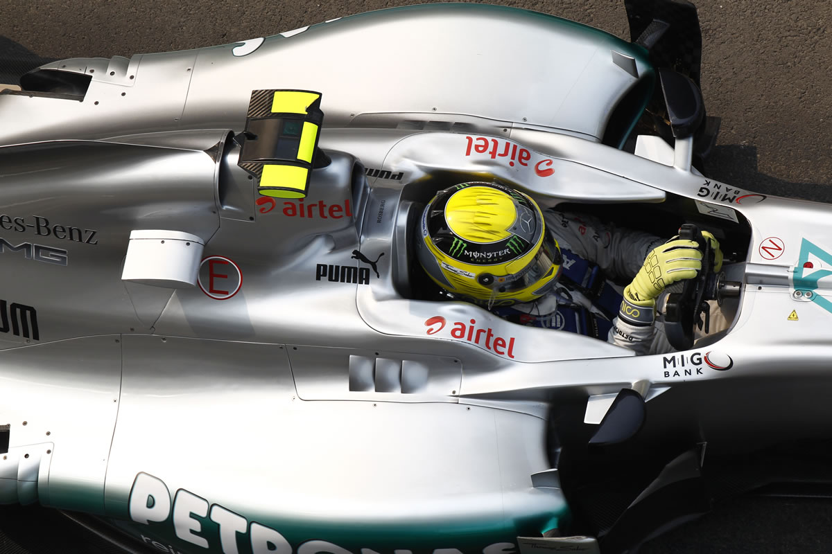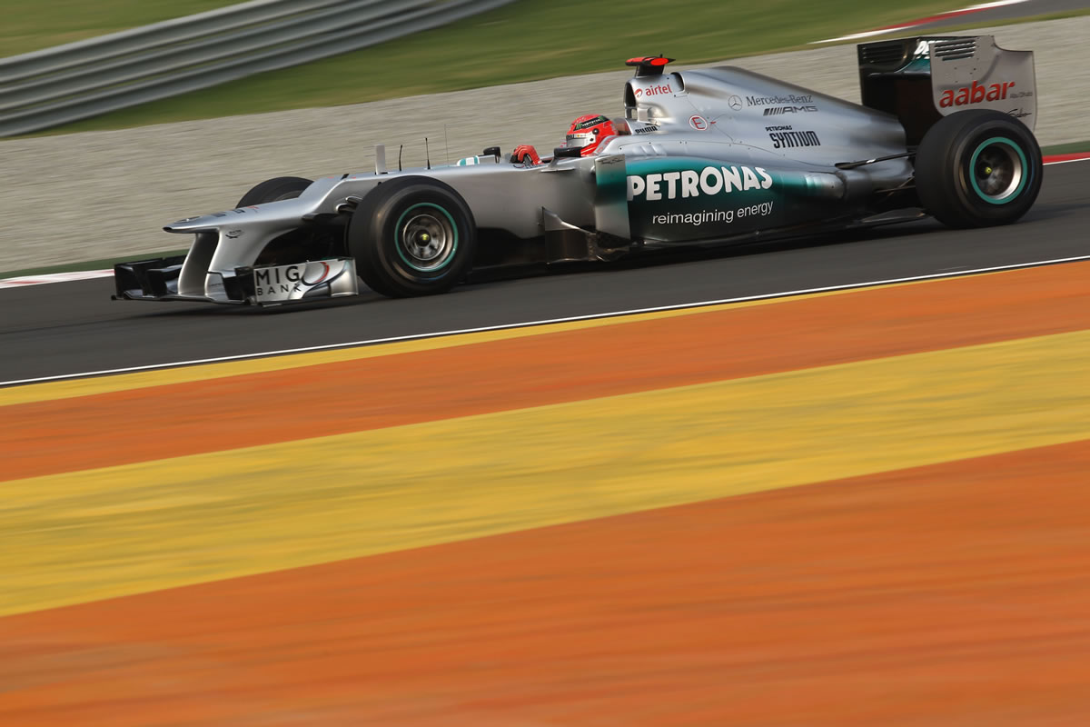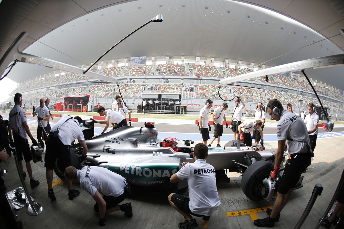 Nico Rosberg finished the Indian Grand Prix in 11th place today with team-mate Michael Schumacher classified in P22. The race was dominated by Red Bull Racing-Renault and McLaren Mercedes with both team-members finishing in the top five. Sebastian Vettel came in first followed closely by Fernando Alonso, trailing by 9.4 seconds. Third place was takien by Mark WEbber, Lewis Hamilton fourth and Jenson Button in fifth.