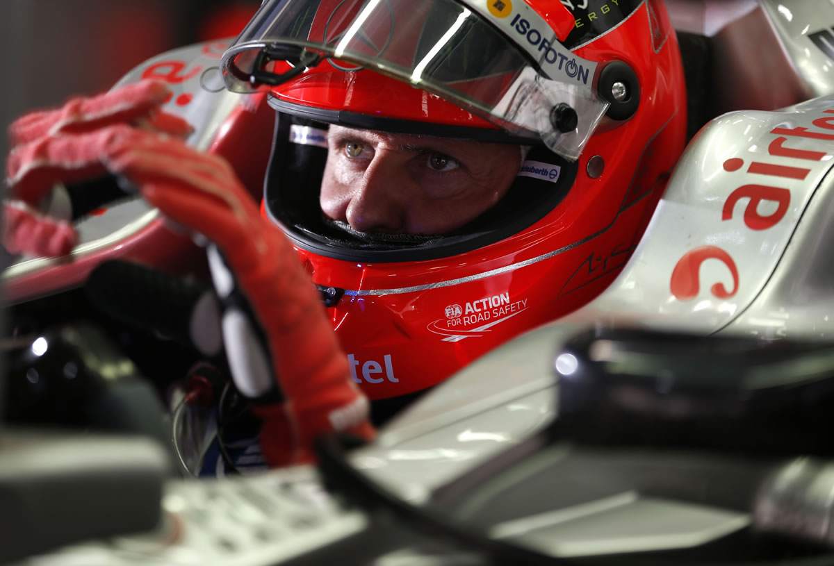 - Michael suffered a first lap right-rear puncture after contact with another car at the first corner