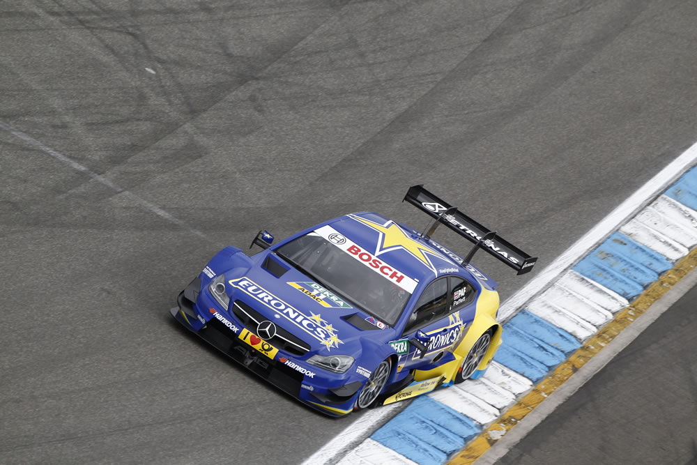 Mercedes junior Pascal Wehrlein (gooix Mercedes AMG C-Coupé) finished the first race of the season in eleventh position. Fellow Mercedes-Benz driver Gary Paffett (EURONICS Mercedes AMG C-Coupé) came home behind him to place twelfth. Contesting his first DTM race since his title win in 2010, Paul Di Resta, (DTM Mercedes AMG C-Coupé) was 14th. Christian Vietoris (Original-Teile Mercedes AMG C-Coupé) ended the season opener in P15.