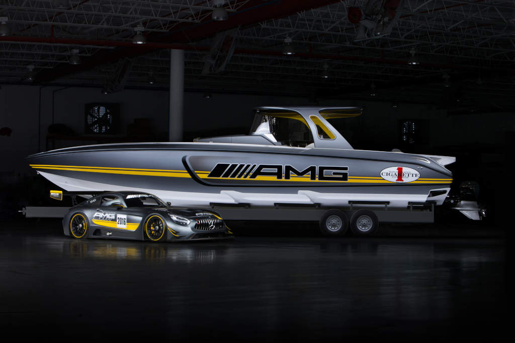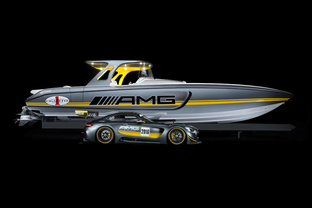 Mercedes-AMG and Cigarette Racing began their collaboration partnership in 2007, primarily for organizing joint customer and marketing activities. Whether on land or water, Mercedes-AMG and Cigarette Racing are united by their focus on delivering the ultimate in performance. Similar to its Mercedes-AMG super sports counterpart, the 38’ to 50’ long powerboats from the American specialists are among the world’s fastest and most exclusive machines. These boats feature custom-made, handcrafted quality for enthusiasts and are tested under the most extreme conditions. Mercedes-AMG and Cigarette Racing share similar DNA makeups: both companies have triumphant racing roots and are still dedicated to this passion.