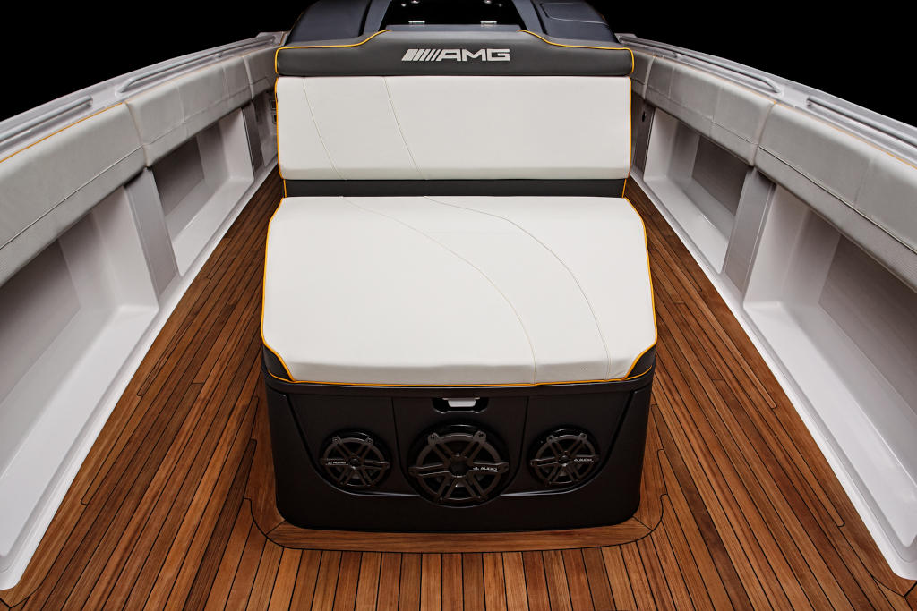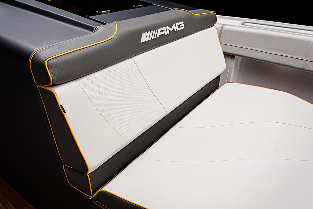 The design and fittings reflect the dynamic characteristics of the Mercedes-AMG GT3. The handcrafted interior and exterior, featuring matte components, a complete teak wood floor and a full extreme marine grade leather interior – a first for Cigarette – was designed by Gorden Wagener and his team.