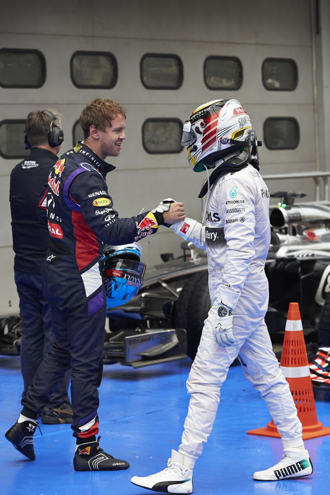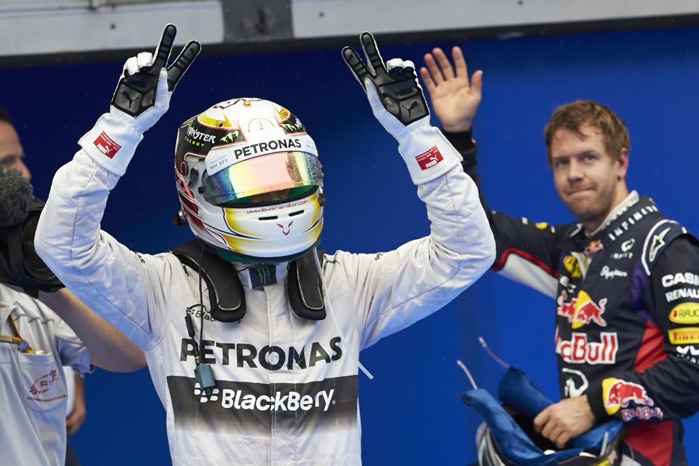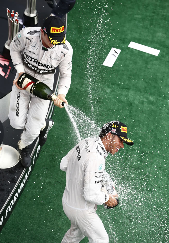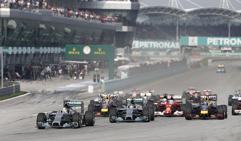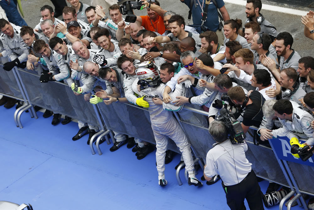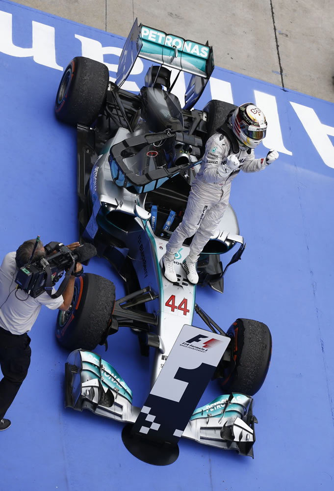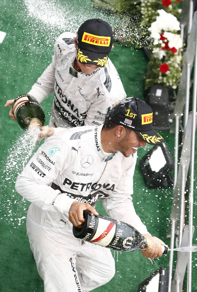 Mercedes AMG Petronas driver, Lewis Hamilton took a lights-to-flag victory at the 2014 PETRONAS Malaysian Grand Prix, while teammate Nico Rosberg finished right behind in second. This is the first one-two finish for the Mercedes Silver Arrows since Juan Manuel Fangio and Piero Taruffi at the 1955 Italian Grand Prix.
