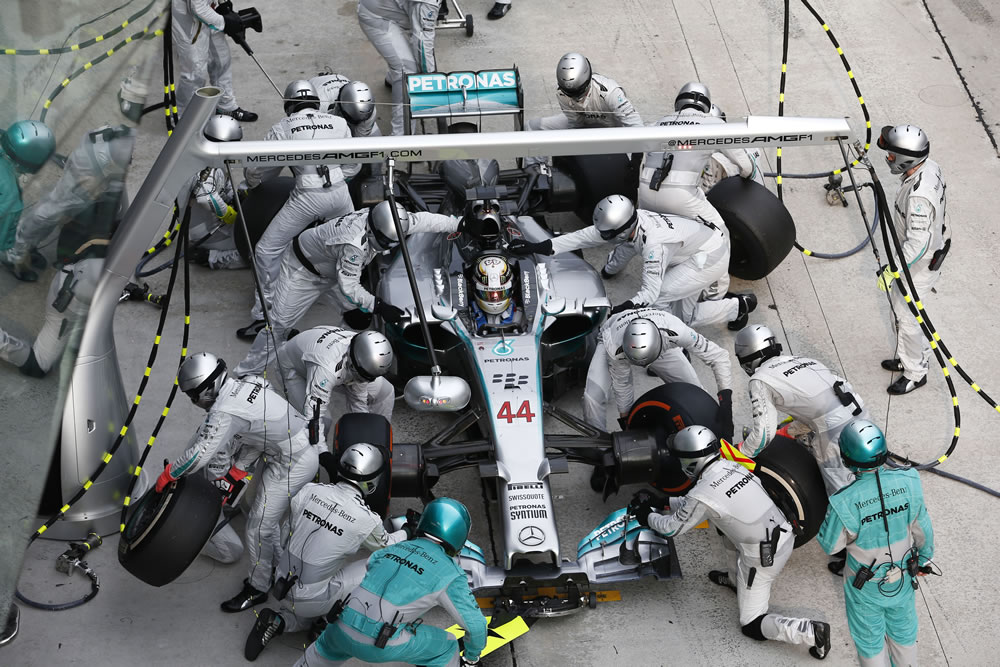 - Lewis stopped on laps 15 and 33 for medium tyres, switching to the hard compound at his final stop on lap 51