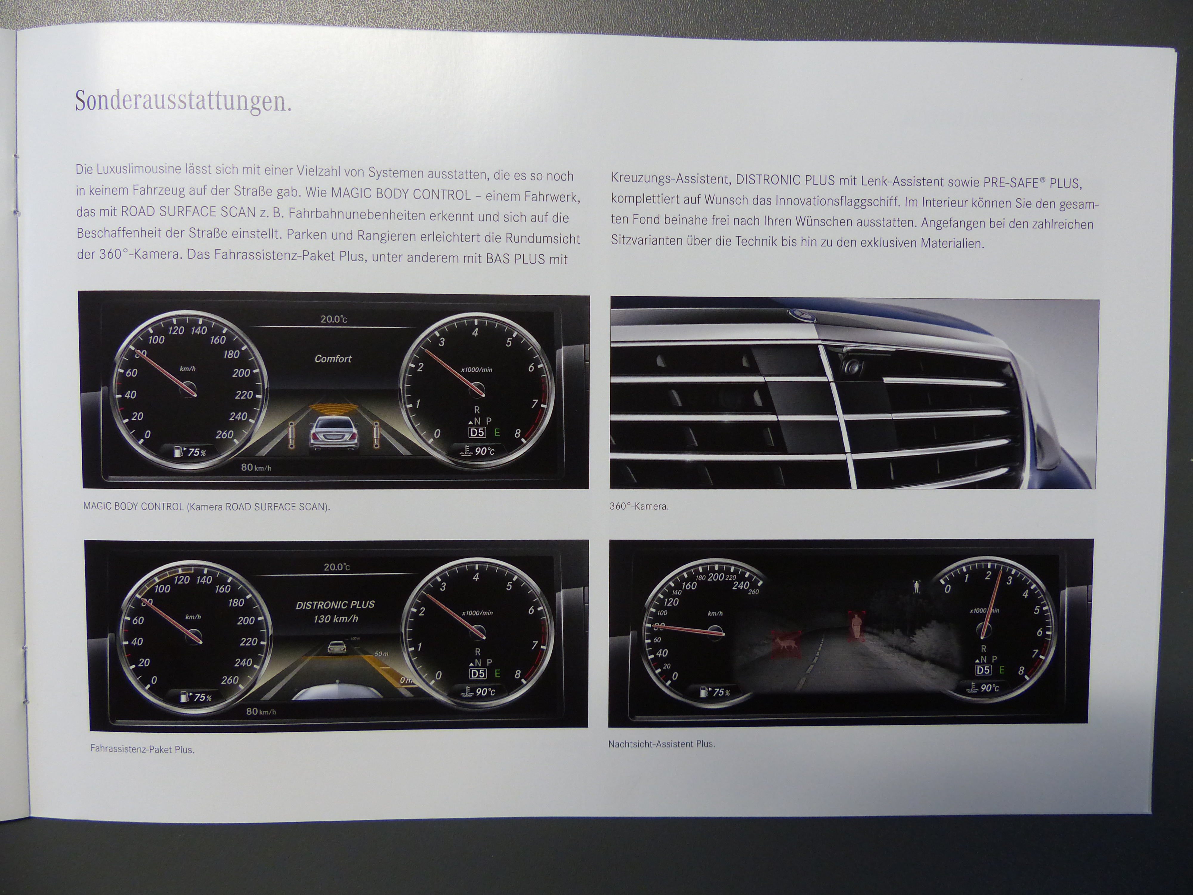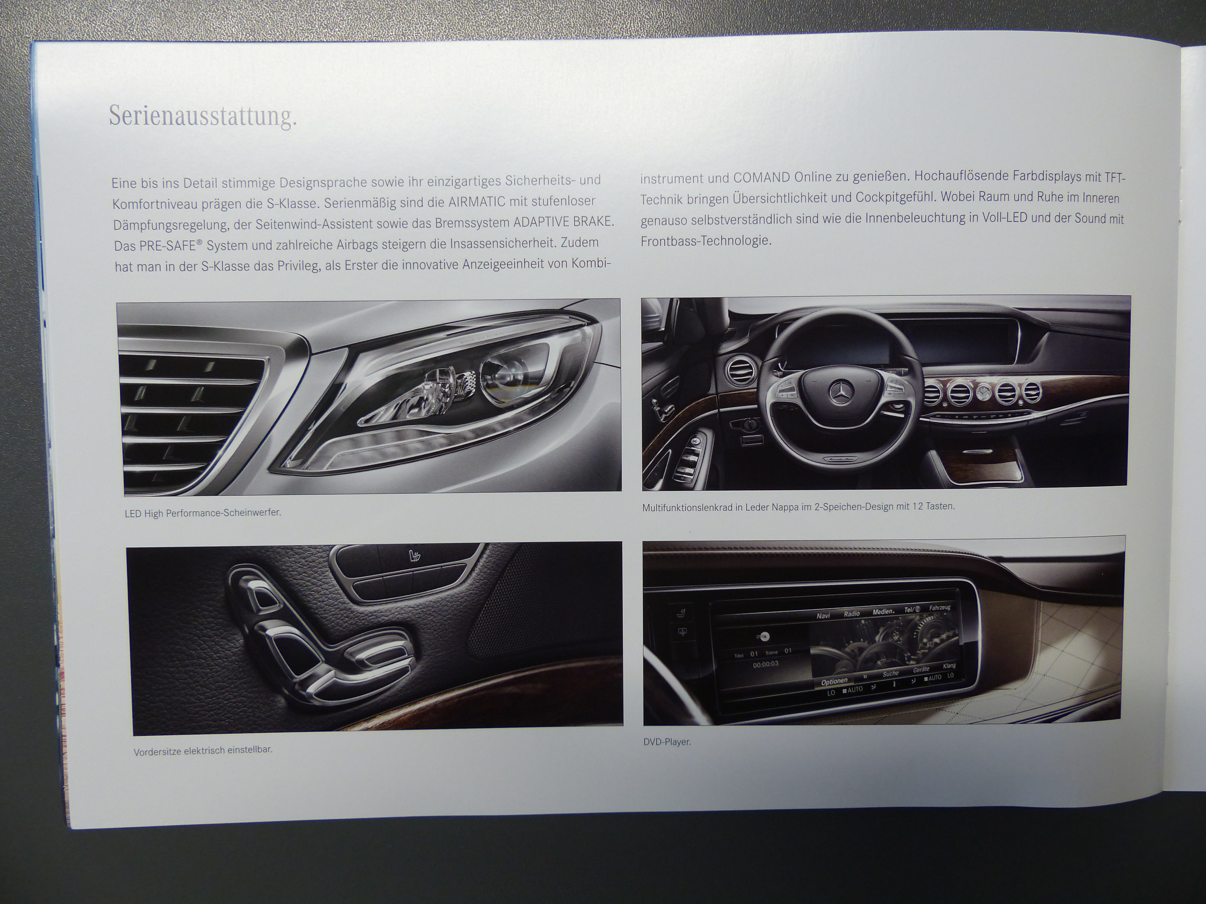 The all-new 2014 Mercedes-Benz S-Class world premiere is just under a week away, but we no longer have to wait for a complete overview of what we can expect from the new W222. The 2014 S-Class brochure was received by one of German Car Forums readers and he was gracious enough to post it for all of us to see. Combine these photos with all the other photos and details on the new S-Class and we’re not sure what will be left to premiere at the Hamburg launch on the 15th. Rest assured however, we’ll bring you complete details of the reveal.