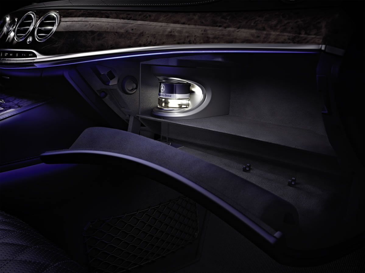 As a world first, the new S-Class Saloon has an “active perfuming system” as part of the AIR-BALANCE package. ‘Active’ means that the perfuming system is switched on and off manually, with manual adjustment of the intensity. The perfume atomisation system individualises the smell of the vehicle interior. It neither changes the interior smell permanently, nor are perfume molecules deposited on fabric surfaces or clothing.