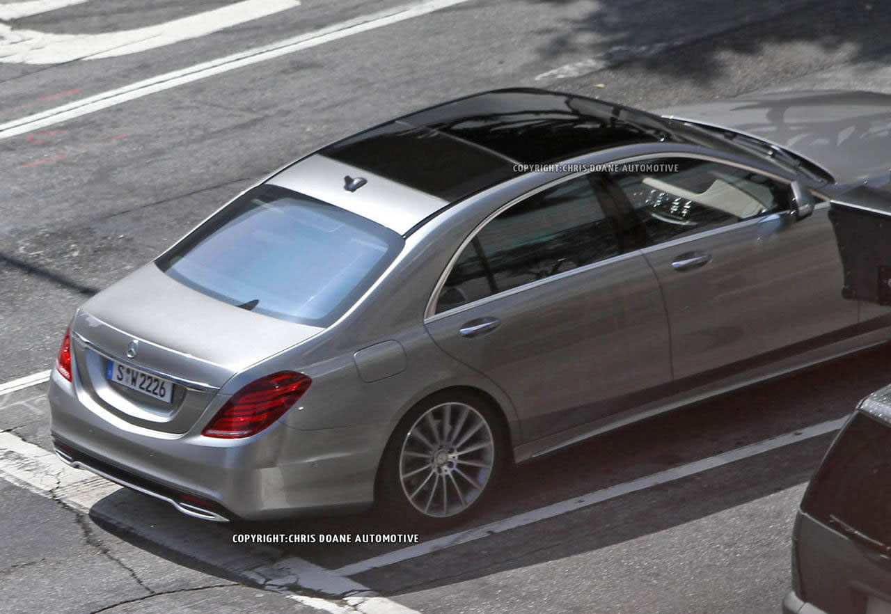 In one of the photos you can easily see both the S-Class short and long-wheelbase posing next to one another. The rear door of the long-wheelbase car is noticeably longer. In addition, these photos also give us a much clearer view of the LED Daytime Running Lights along with the larger styled grille.