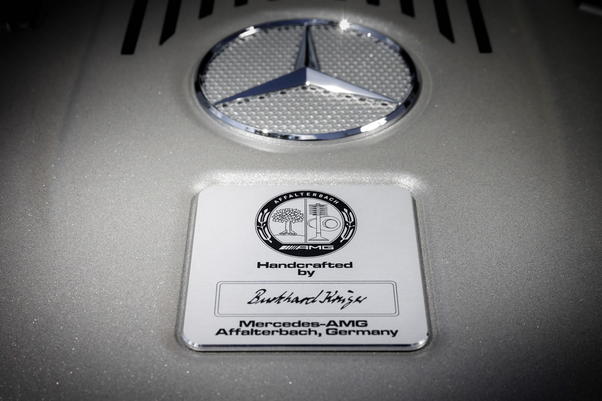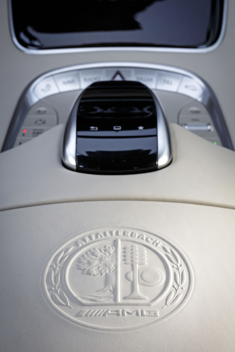 Opening the bonnet reveals the exclusive carbon-fibre/aluminium engine cover, which is a further sign of the exceptional status of the AMG 6.0-litre V12 biturbo engine. Two AMG logos on left and right together with a centrally positioned Mercedes star create a lasting impression. The 12-cylinder engine is assembled by hand at AMG’s engine production facility in compliance with the most rigorous quality standards according to the philosophy “one man, one engine”. Apart from serving as an AMG hallmark confirming superlative precision and production quality, the AMG engine badge bearing the engine technician’s signature underneath the Mercedes star offers unmistakable proof of the peerless DNA of Mercedes-Benz’s high-performance brand.