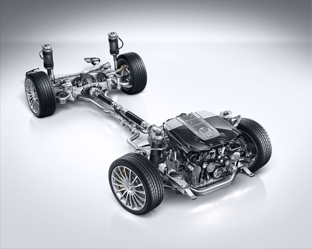 The AMG SPEEDSHIFT PLUS 7G-TRONIC is responsible for transmitting power to the rear axle. The transmission offers three individual modes: the driver can choose between Controlled Efficiency (C), Sport (S) and Manual (M) by pushing a button on the centre console. Sport and Manual emphasise the vehicle’s dynamism: the ultimate emotional appeal and tangible sportiness are ensured by the brief, precisely defined cutback of ignition and injection when shifting up a gear under full load. This shortens shift times and lends an audibly more emotive tone to gearshifts. The ECO start/stop function is activated in transmission mode “C”.