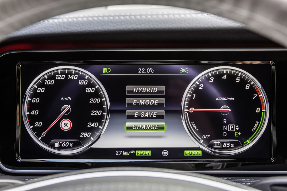Climb in, start, drive off and, as well as exemplary efficiency, on request experience via kickdown the special acceleration of the electric motor – this is how easy hybrid driving is with the new S550 PLUG-IN HYBRID. For in everyday use it moves just as easily as any other automatic transmission car.