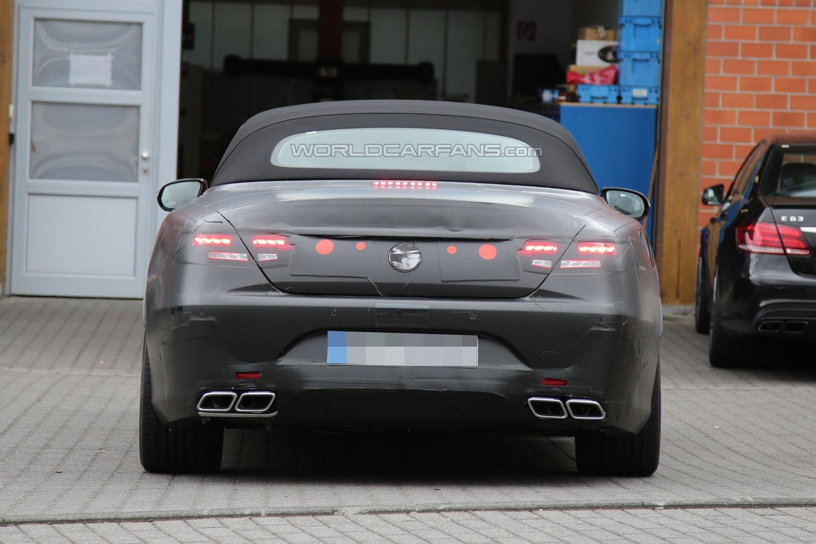 Caught undergoing testing in Germany, the high-performance model follows in the footsteps of the S63 AMG Coupe but adopts a retractable soft top and a modified rear end. The car also features an aggressive front fascia, lightweight alloy wheels and a four-tailpipe exhaust system.