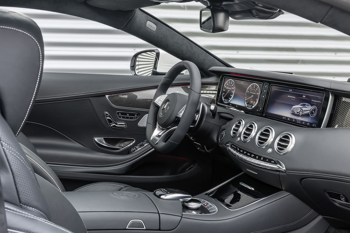 The S63 AMG 4MATIC Coupe is the latest model to benefit from the systematic implementation of the AMG Lightweight Performance strategy. Lightweight construction has reduced the vehicle weight by up to 140 pounds – even though the car has a higher output and more extensive standard equipment than the preceding model. This weight savings was achieved largely thanks to the use of a lightweight lithium-ion battery, optional AMG forged light-alloy wheels and a weight-optimized AMG high-performance composite braking system. Furthermore, the entire outer skin and the front end of the body are made of aluminium. The reduced weight improves driving dynamics and cuts fuel consumption, while the low power-to-weight ratio results in impressive performance: the S63 AMG Coupe accelerates from 0 to 60 mph in an estimated 3.9 seconds and goes on to reach a top speed of 186 mph (electronically limited).