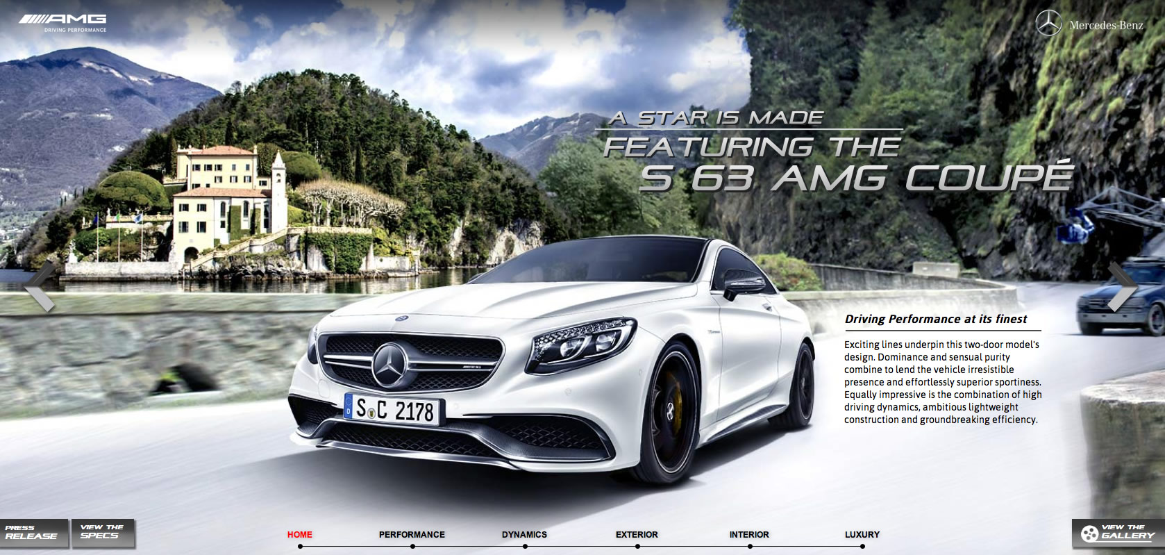 The AMG coupe’s web special includes information on the model’s performance, driving dynamics, exteriro and interior design as well as a look at just how luxurious a sporty coupe can be.