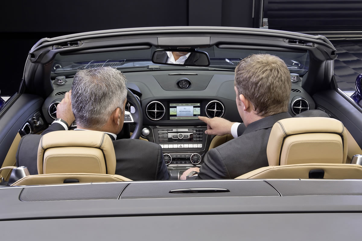 An attractive highlight among the extensive standard equipment of the SL 65 AMG is the Bang & Olufsen BeoSound AMG high-end surround sound system: Mercedes-Benz and Mercedes-AMG have created it in conjunction with famous Danish audio specialists Bang & Olufsen. The sound system enables an exclusive music experience to be enjoyed at the very highest level. The basis of the system is formed not only by the amplifier with a total output of 900 watts and 12 high-end loudspeakers including Frontbass, but also the precise distribution of the music signals, controlled by the sound processor, to the selectable seating positions of driver, front passenger or the central position.