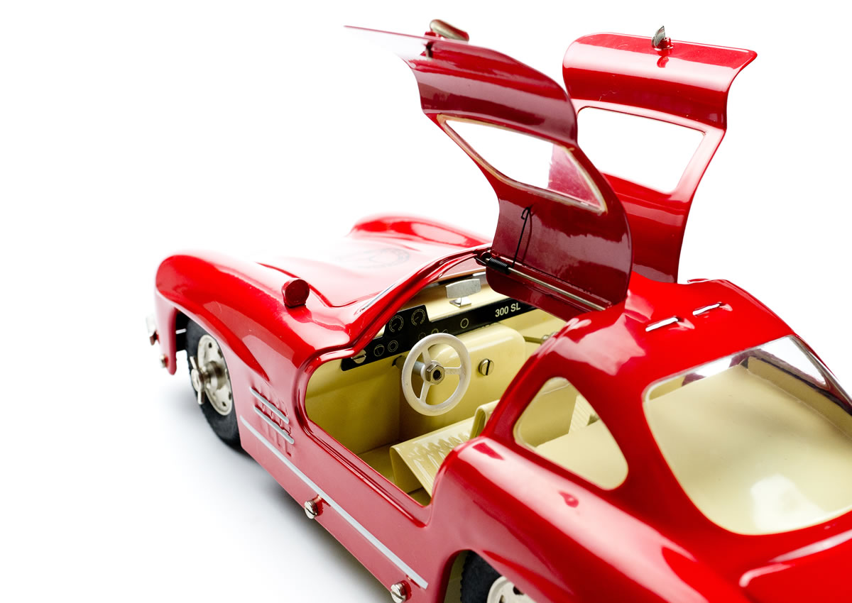 Soon after the launch of the W 198 I, a large number of tin miniatures of the gullwing coupé hit the international toy market. Many of them were rather crudely made, like the many versions manufactured in Japan. These tin models of the 300 SL didn’t sell very well in Germany, and the vast majority of them sold in foreign markets. This is another parallel between the original Mercedes-Benz car and the model versions: both were successful exports right from the start.