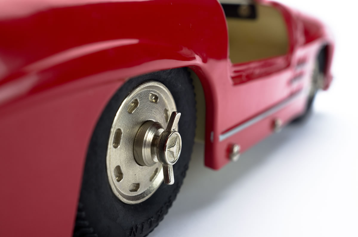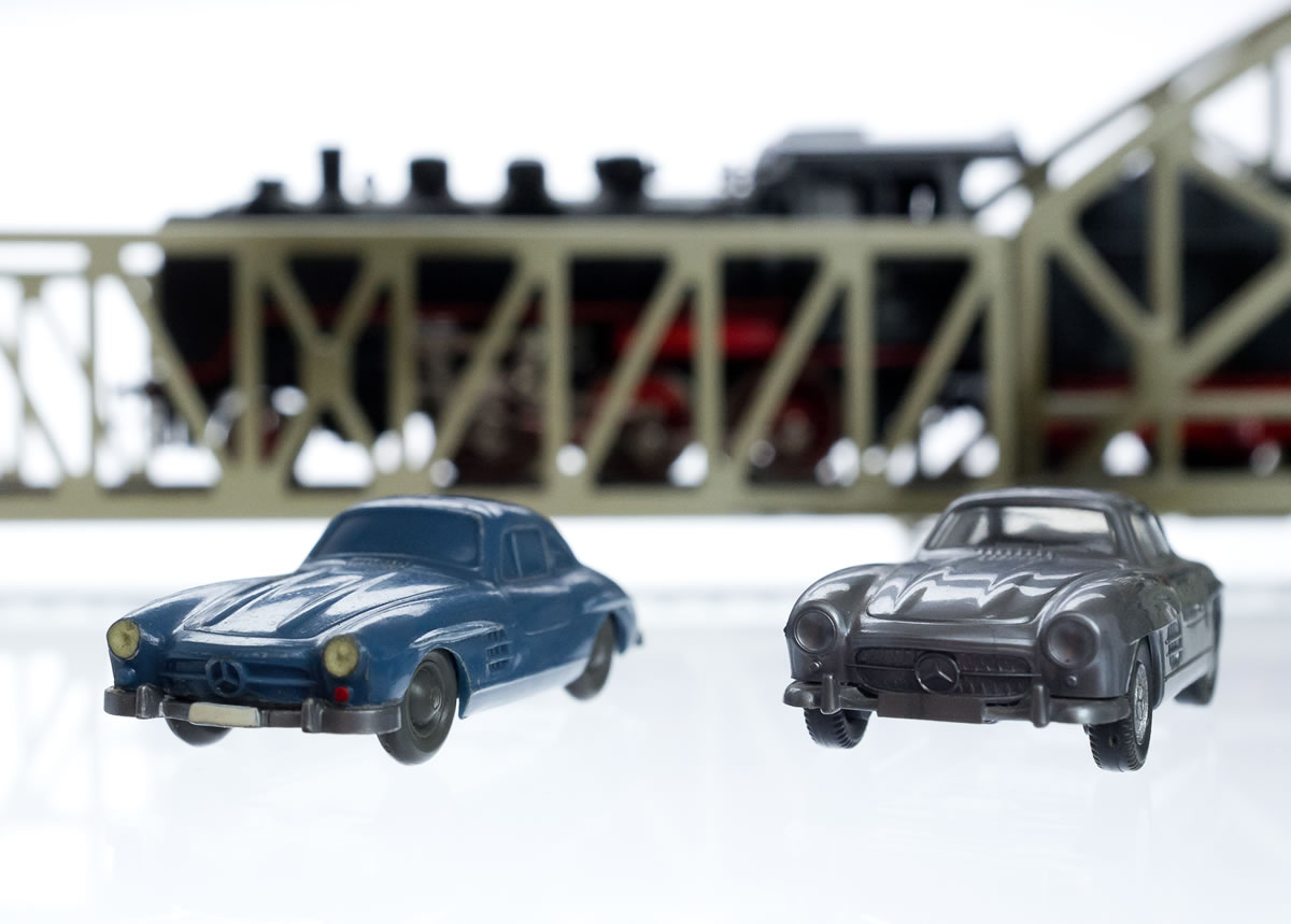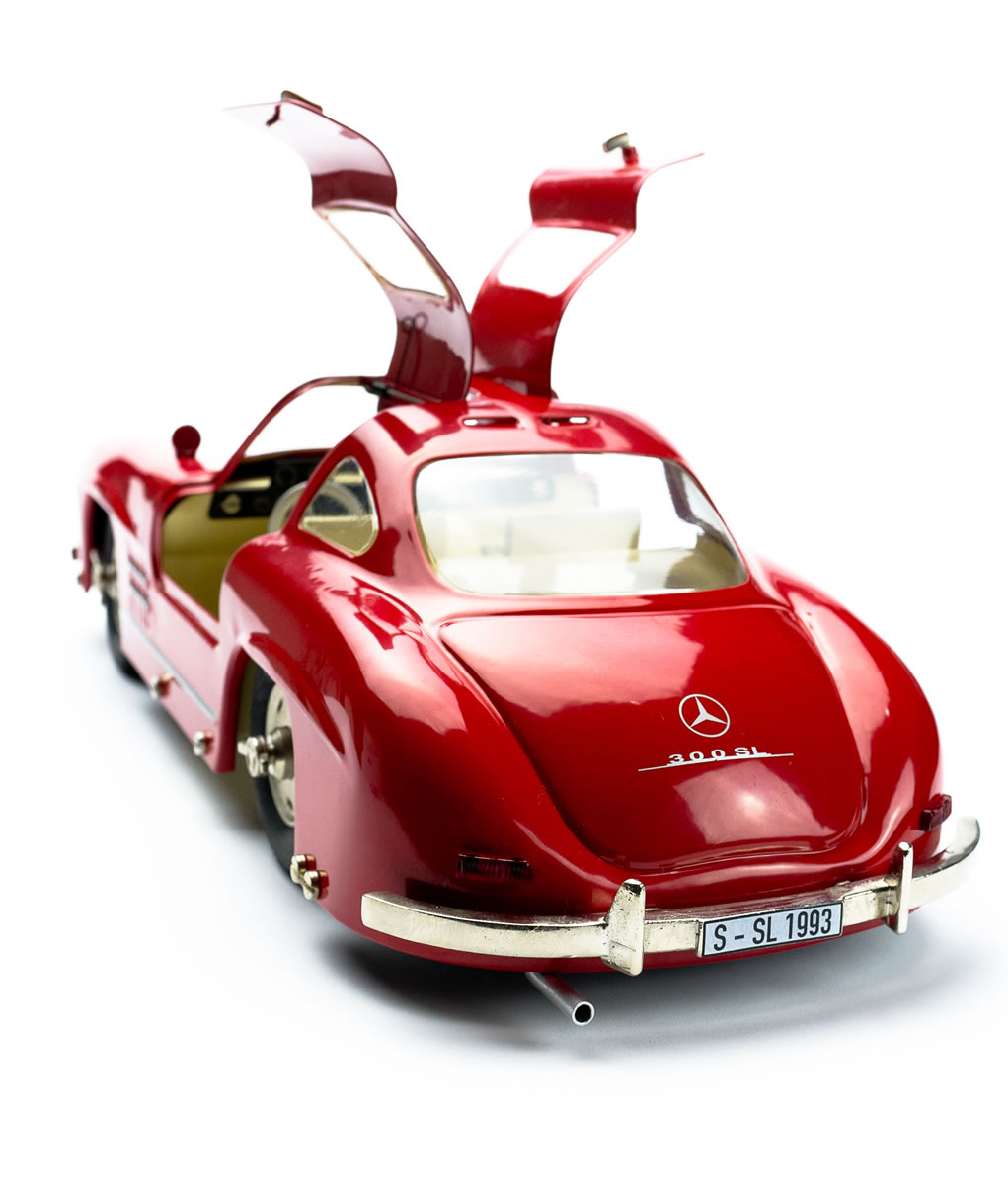 But the fascination of the original remains when you hold a wind-up tin car in your hands: these toys are technical reminders of the period characterised by the 300 SL as the first series sports car in its family. In the 1990s, Märklin used this very technology to produce an impressive large-scale model of the W 198 I, including a limited edition for the 40th anniversary of the Federal State of Baden-Württemberg (silver) and a museum model (red).