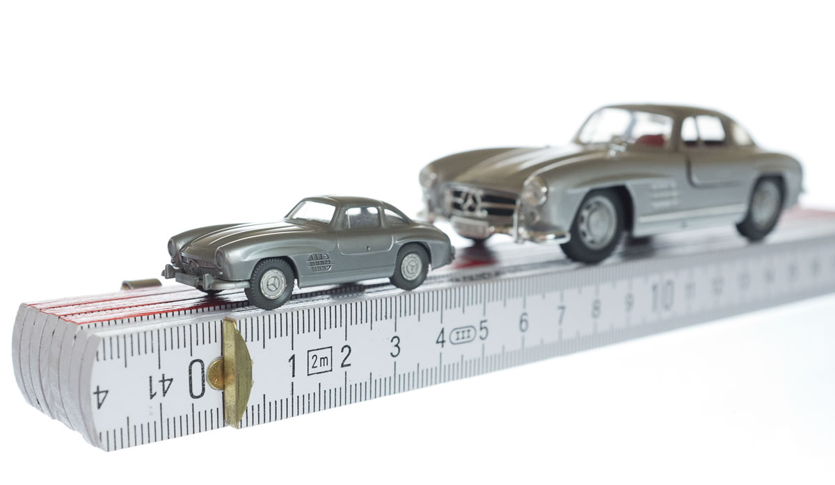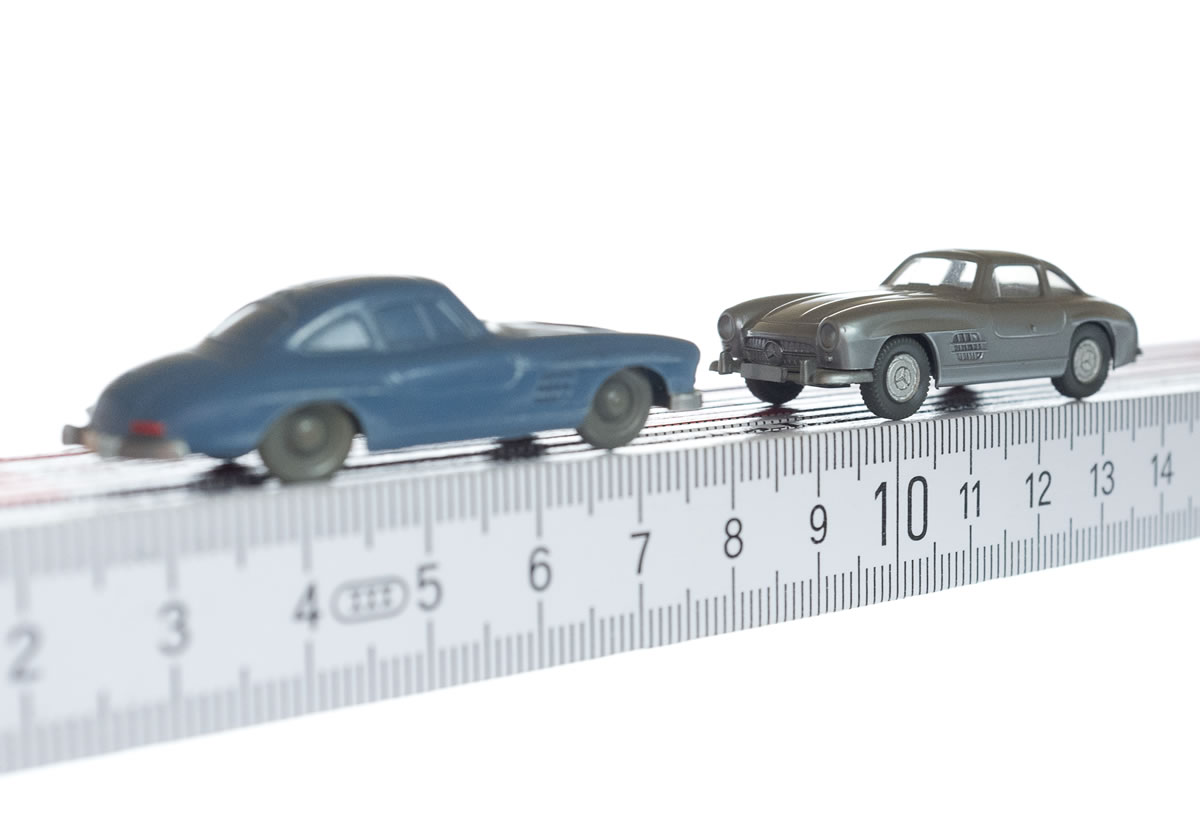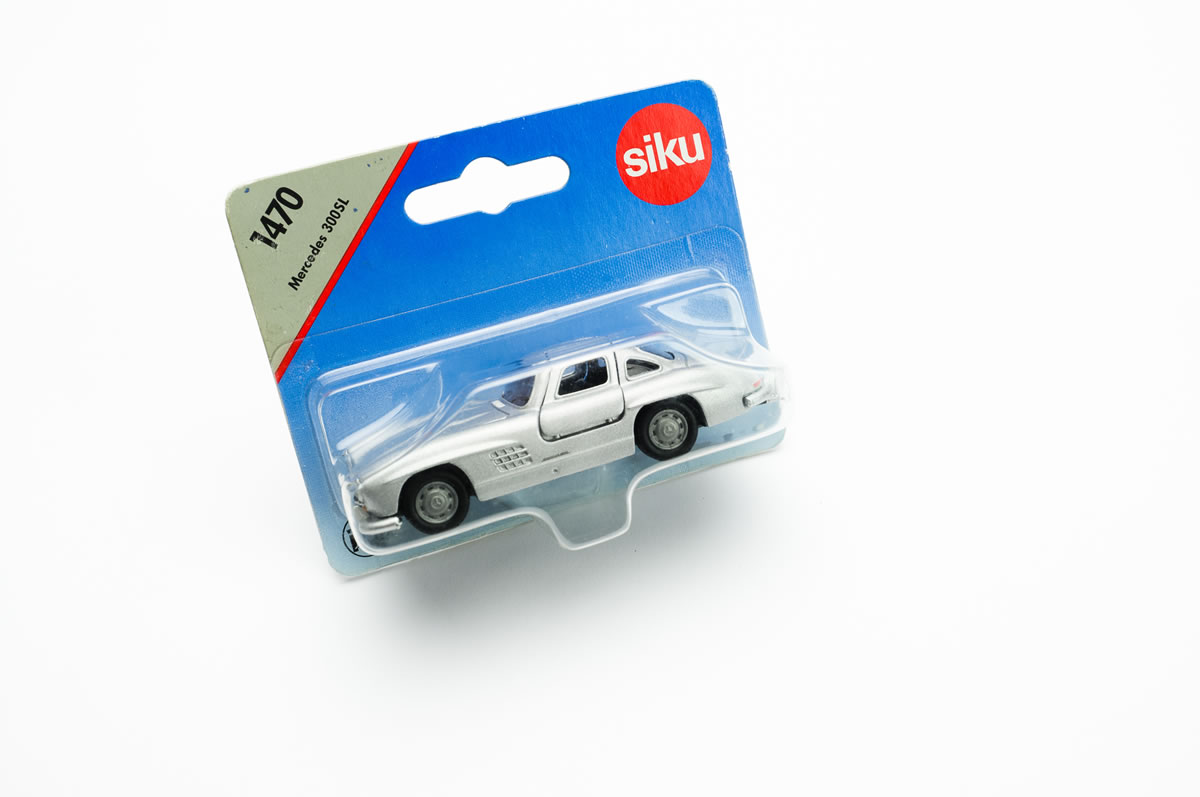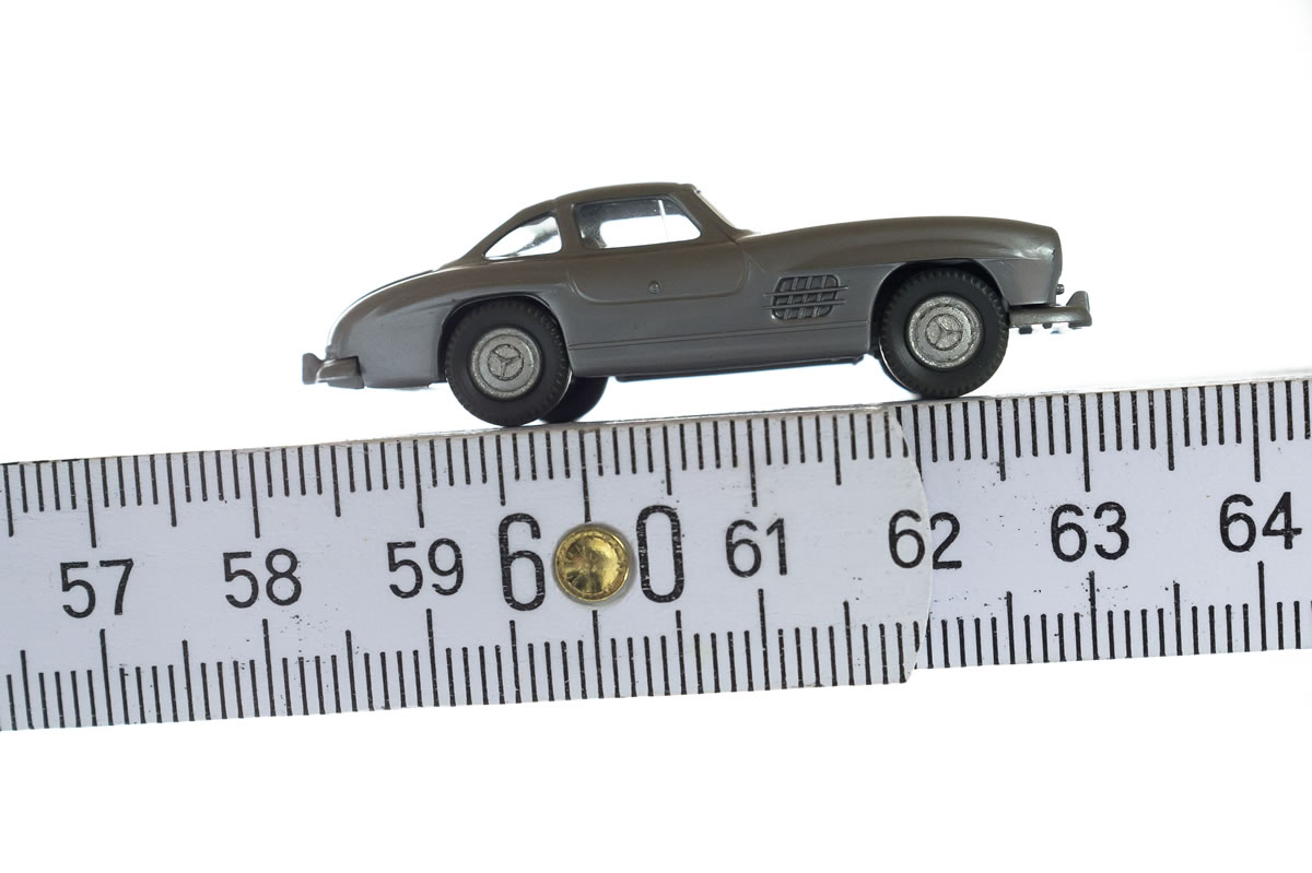 The process of evolution undergone by models can be demonstrated using the example of the 300 SL Coupé by Wiking, made from plastic on a scale of 1:87, which was first introduced with the 1956 price list. At that time, the gullwing sports car, on the same scale as an H0 gauge model railway, had a body without holes for the windows, and with the glass of the headlights represented by colour. In 1960, this was followed by a 300 SL with a transparent windscreen and windows – to go with the 190 SL with coupé roof introduced by Wiking in 1957. Wiking continued to produce more and more refined versions of the gullwing coupé, culminating in a version with an intricate radiator grille and bumpers.