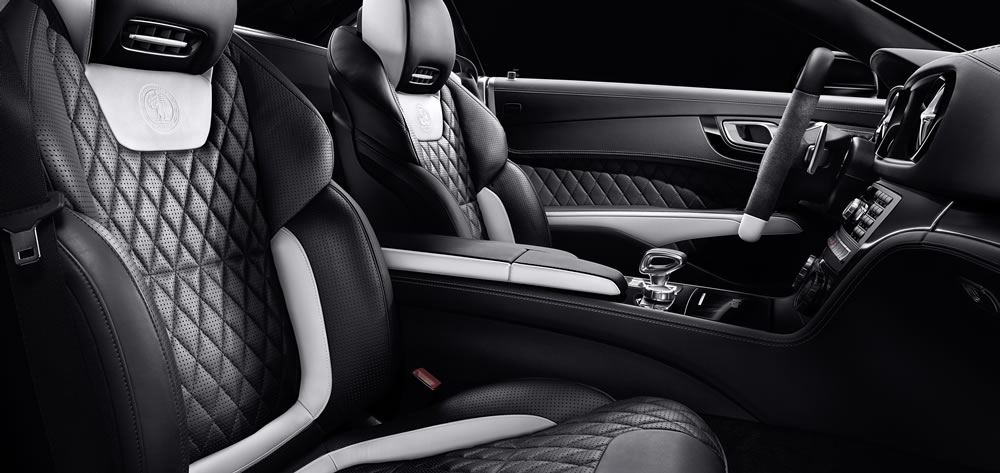 The 2LOOK Edition excites with thrilling contrasts and stands for pure exclusivity: The vario-roof, the cross-strut in the AMG front apron, the exterior mirror housings, the fins on the wings and bonnet, the surrounds of the LED daytime running lamps, the spoiler lip on the tail end and the diffuser insert in the AMG rear apron all shine resplendent in high-gloss black. The tailpipe trim elements of the AMG sports exhaust system feature a black chrome-plated finish, while high-gloss chrome is reserved for the twin louvre of the radiator grille and the AMG lettering. Further highlights are the large Edition-specific 48.3 cm (19-inch) or 50.8 cm (20-inch) AMG 10-spoke forged wheels, painted in matt black and featuring a high-sheen finish, and the red-painted brake callipers.