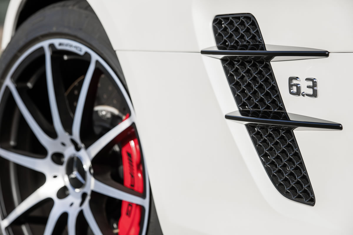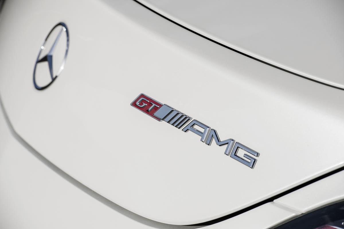 Dynamic, masculine and decidedly athletic: fitted as standard with AMG forged wheels painted in matt black with a high-sheen finish, darkened headlamps and tail lights as well as red-painted brake callipers, the high performance of the SLS AMG GT is also highlighted in terms of its look. The wing-shaped cross fins and the star recess in the radiator grille are retained in high-gloss black, as are the exterior mirrors and the fins on the bonnet and wings. The AMG logo on the right of the boot lid also features the additional letters “GT”.