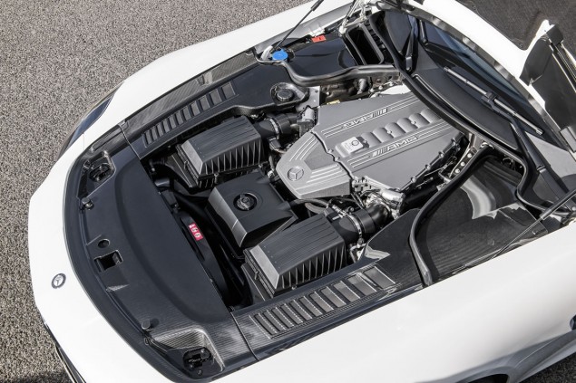 The maximum output of the AMG 6.3-litre V8 front-mid engine is 435 kW (591 hp) at 6800 rpm, while the maximum torque is 650 Nm at 4750 rpm. The super sports car accelerates from zero to 100 km/h in 3.7 seconds, and can reach a speed of 200 km/h in 11.2 seconds. The top speed is 320 km/h (electronically limited). The GT version of the eight-cylinder naturally aspirated engine provides an agile response to accelerator pedal input and excites with its sporty performance. The AMG SPEEDSHIFT DCT 7-speed sports transmission located on the rear axle is more direct and spontaneous in the manual “M” transmission mode: thanks to newly developed gear change functions and optimised transmission control, it has been possible to shorten reaction time significantly. The reaction time experienced by the driver is made even more emotional as a result of more distinct gear changes. The automatic double-declutching function when shifting down is also more pronounced in the SLS AMG GT.