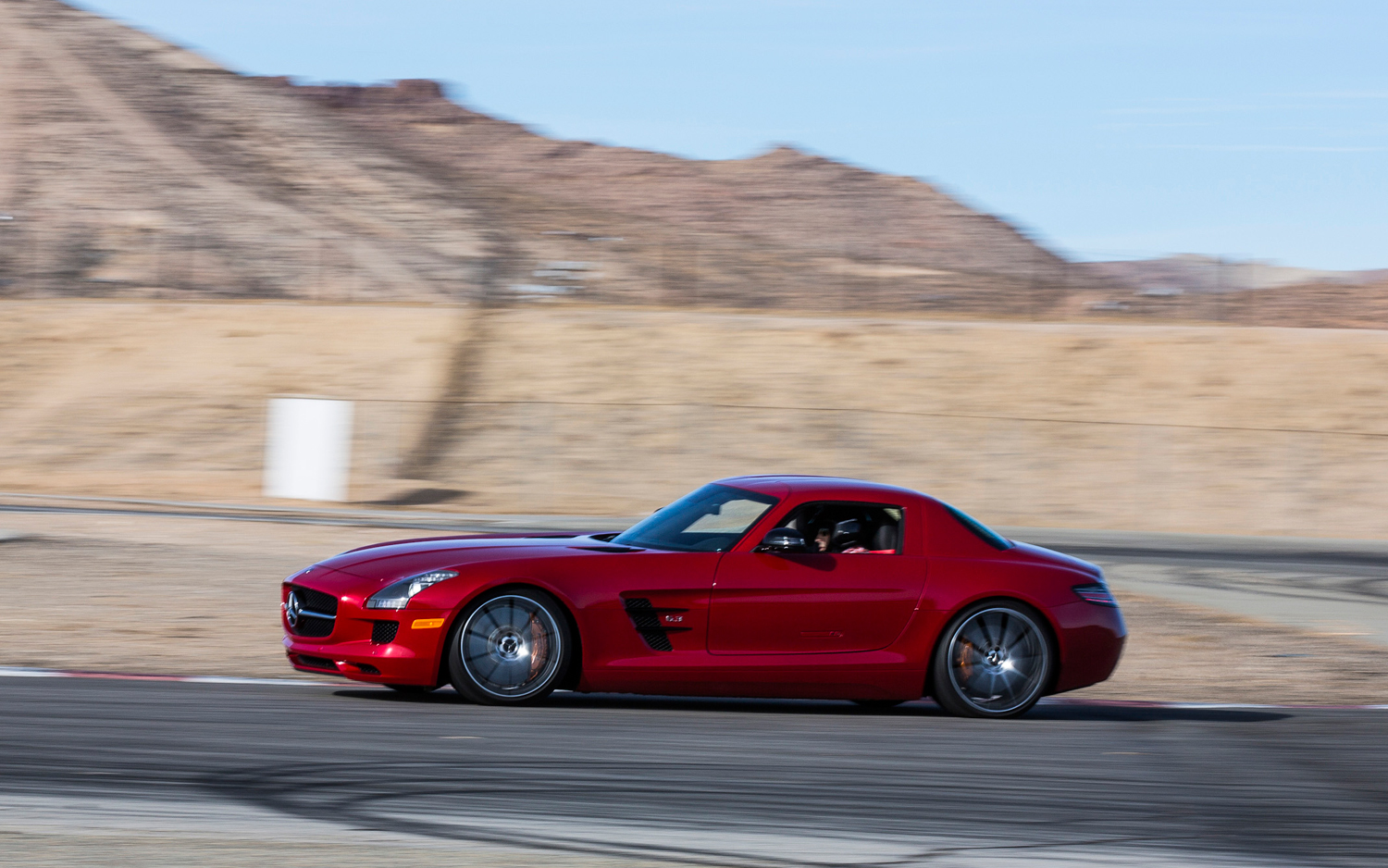 Preston says “The SLS AMG GT is too stunning and too pricey — $200,405 for the coupe, $206,905 for the roadster — to see much track-day duty. Still, Mercedes insists that the car is more than a poseur.” To prove the GT’s abilities, Mercedes brought four cars to The Streets of Willow, a test track in the desert north of Los Angeles for testing. I
