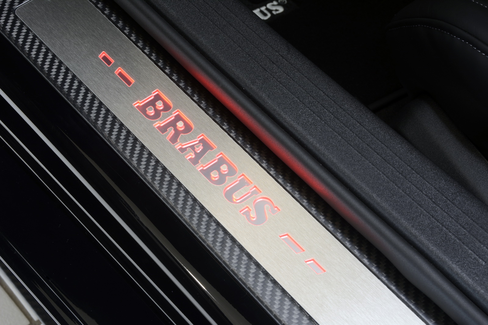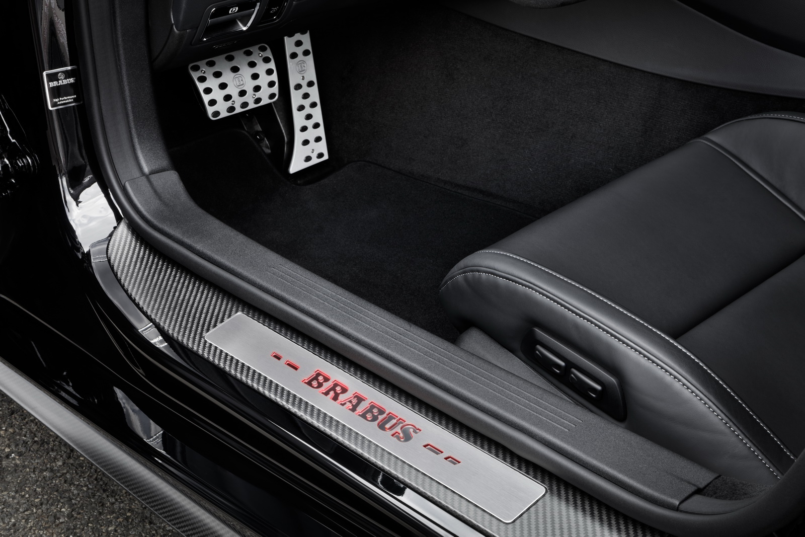 For the cockpit of the sports car, the BRABUS interior designers have developed exclusive accessories such as carbon scuff plates with stainless-steel inserts and a backlit BRABUS logo, whose color changes between red and white, and matte anodized or chrome-plated aluminum pedals. Special BRABUS aluminum paddle shifters in an even more ergonomic position on the steering wheel make even more precise gear changes possible.