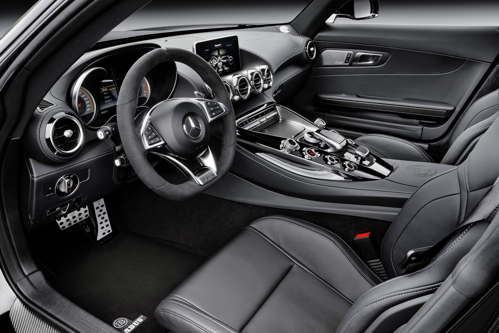 From the outside, the sports car with BRABUS design impresses with aerodynamic-enhancement components made from clear-coated carbon, ultra-light BRABUS Monoblock F forged wheels, a sports suspension with a multitude of selectable settings for damping and ride height, and a sports exhaust system made from especially lightweight titanium with electronically controlled sound management.