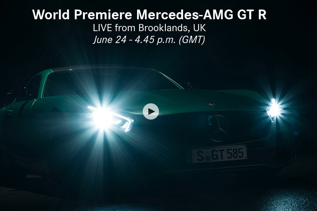 Never before has Mercedes-AMG equipped a standard production vehicle with such a racing technology as the all new AMG GT R. The front mid V8 biturbo engine with transaxle transmission, producing 430 kW / 585 PS, a substantial modified undercarriage, new aerodynamic and the intelligent light weight construction are the key elements of an ultimate driving experience. On June 24th, the new sports car with a pure race DNA will be presented in Brooklands, UK.