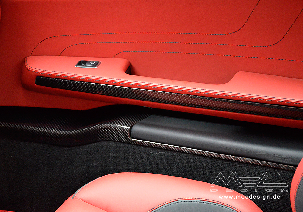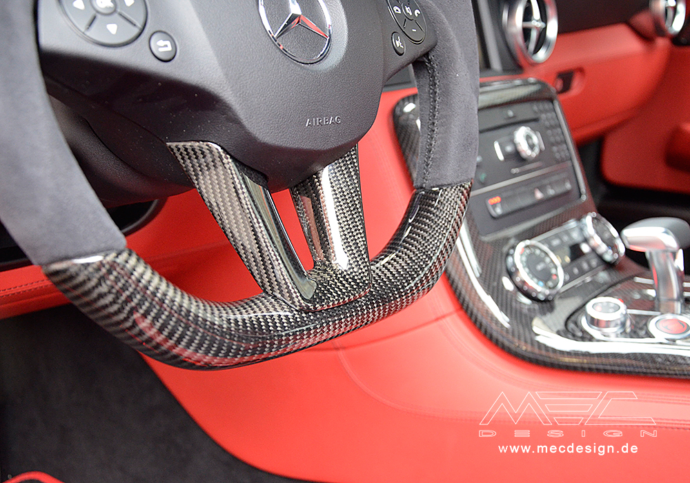 For the exterior, the SLS AMG Roadster by MEC Design is covered in a completely new bodykit that includes a new front bumper with LED-insets, carbon fiber front lip spoiler, rear bumper with carbon fiber GT3 diffuser, side skirts, and a rear trunk lid spoiler that can also come in carbon fiber.
