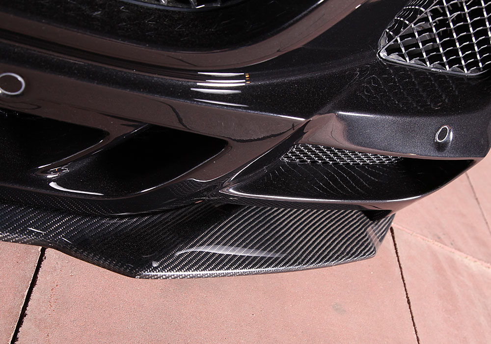 The updated aero kit includes a new carbon fiber front bumper with LED insert and two-piece front spoiler lip, available also as a one-piece front spoiler lip. In the rear, the bumper features an extreme diffuser in carbon fiber finish with the option of installing a GT3, Formula and Black Series style diffuser if you prefer.