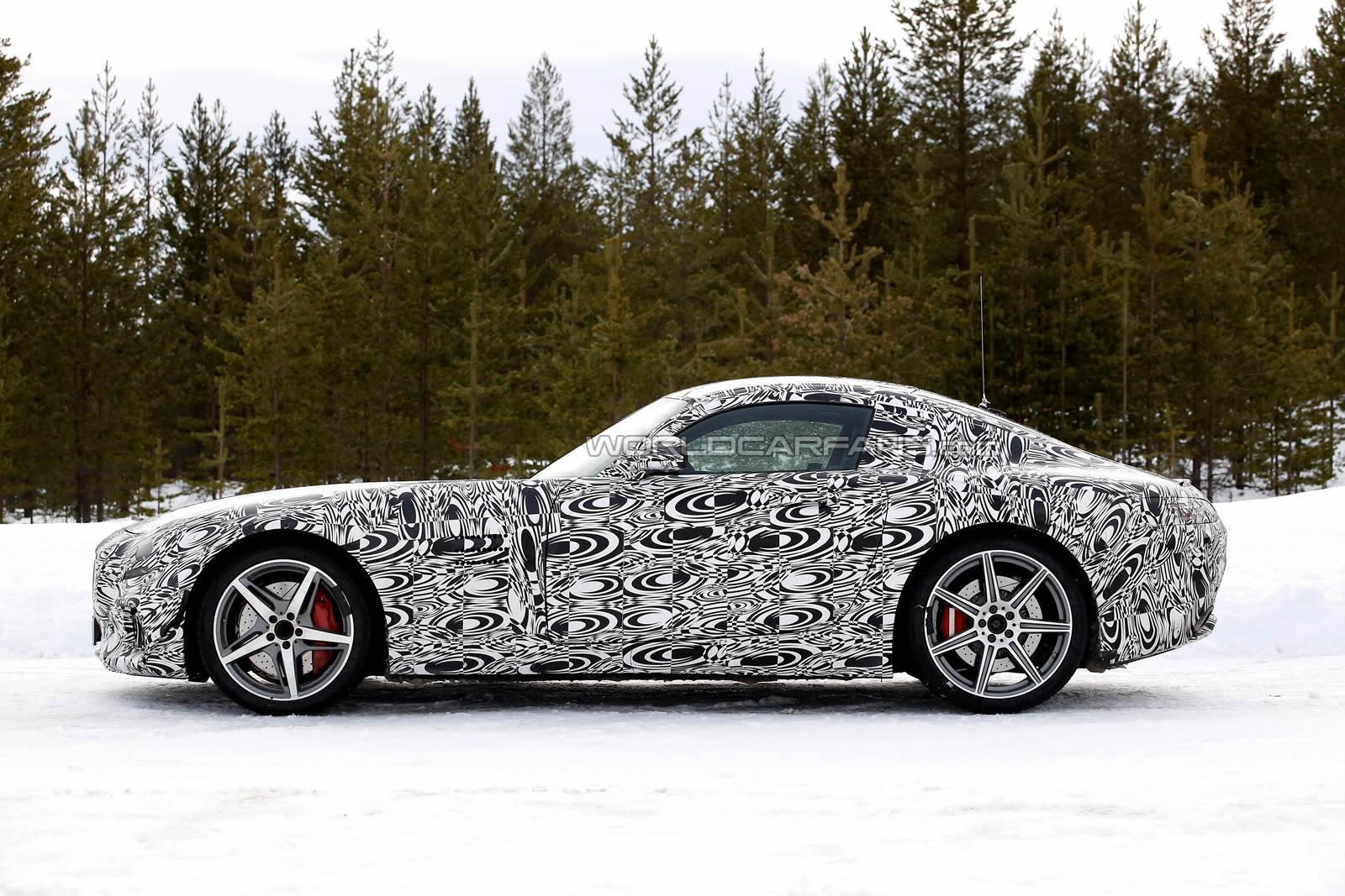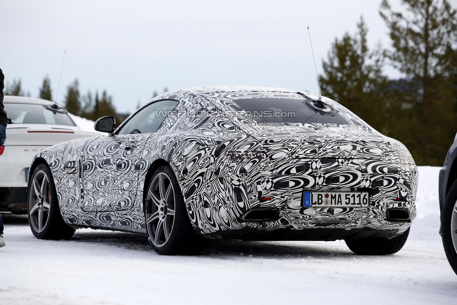 Based on the latest photos and thanks to the less bulky camo, you can see that the AMG GT has been influence more by the SLS than previously thought. It features a large front grille and LED headlights at the front of a very long hood and dual exhaust setup.